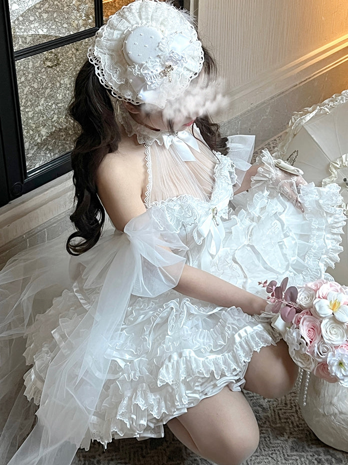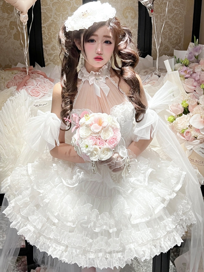 Rosa und weißes Old School Lolita Fashion Kleid Bowknot Detais Lolita JSK Set