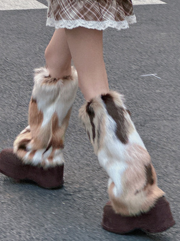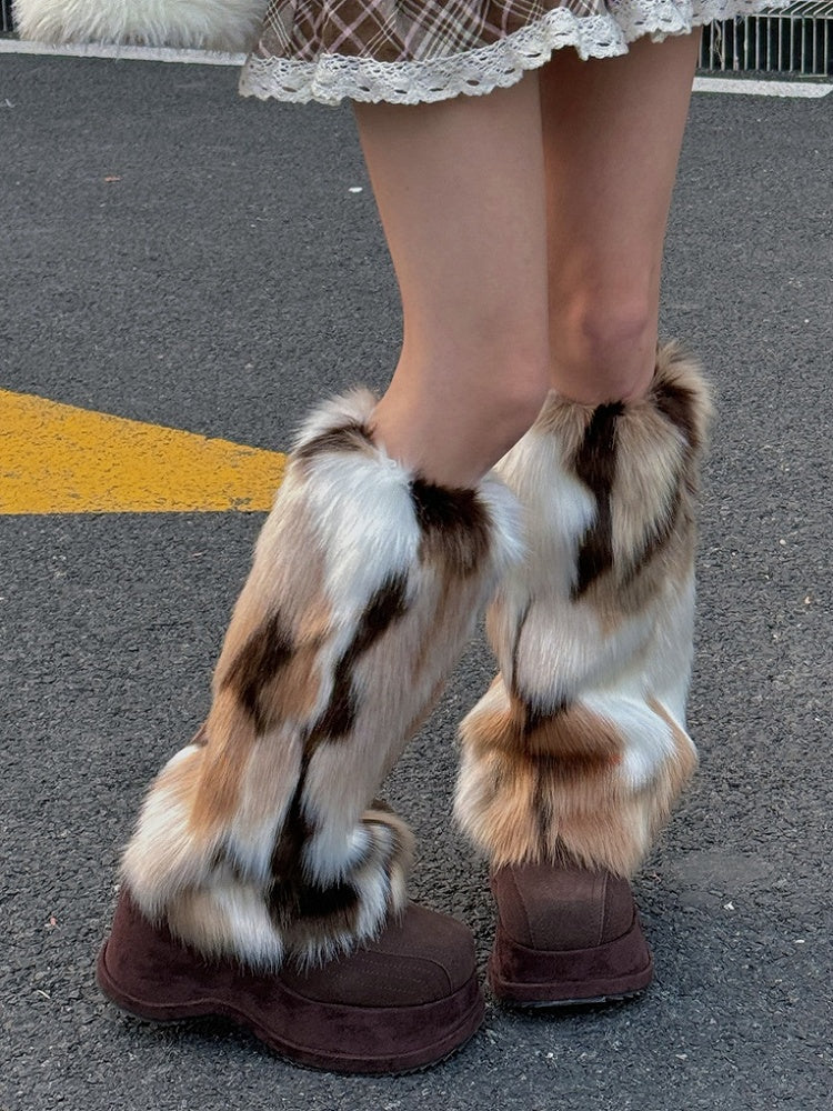 Gönnen Sie sich kuschelige Niedlichkeit mit unseren weiß-braunen Y2K Shaggy Leg Warmers. Aus weichem, zotteligem Stoff gefertigt, halten diese Beinwärmer Sie warm und verleihen Ihrem Outfit einen Hauch von Niedlichkeit. Perfekt für kühle Tage, sind diese Beinwärmer ein Must-have für jede modische Garderobe.