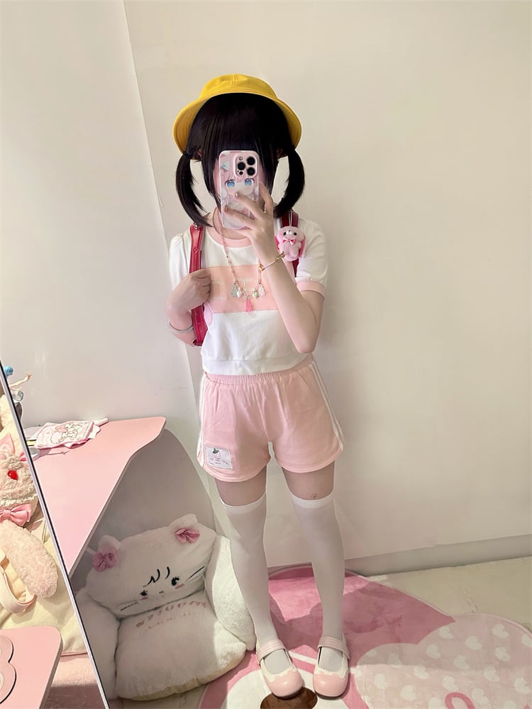 Rosa und weißes Old School Lolita Fashion Kleid Bowknot Detais Lolita JSK Set