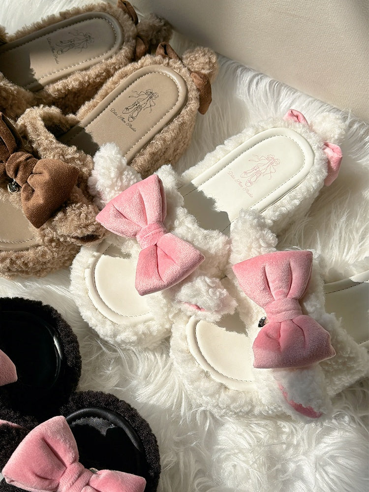 Weißer Winter-Slipper mit süßer Schleife und Lammohren