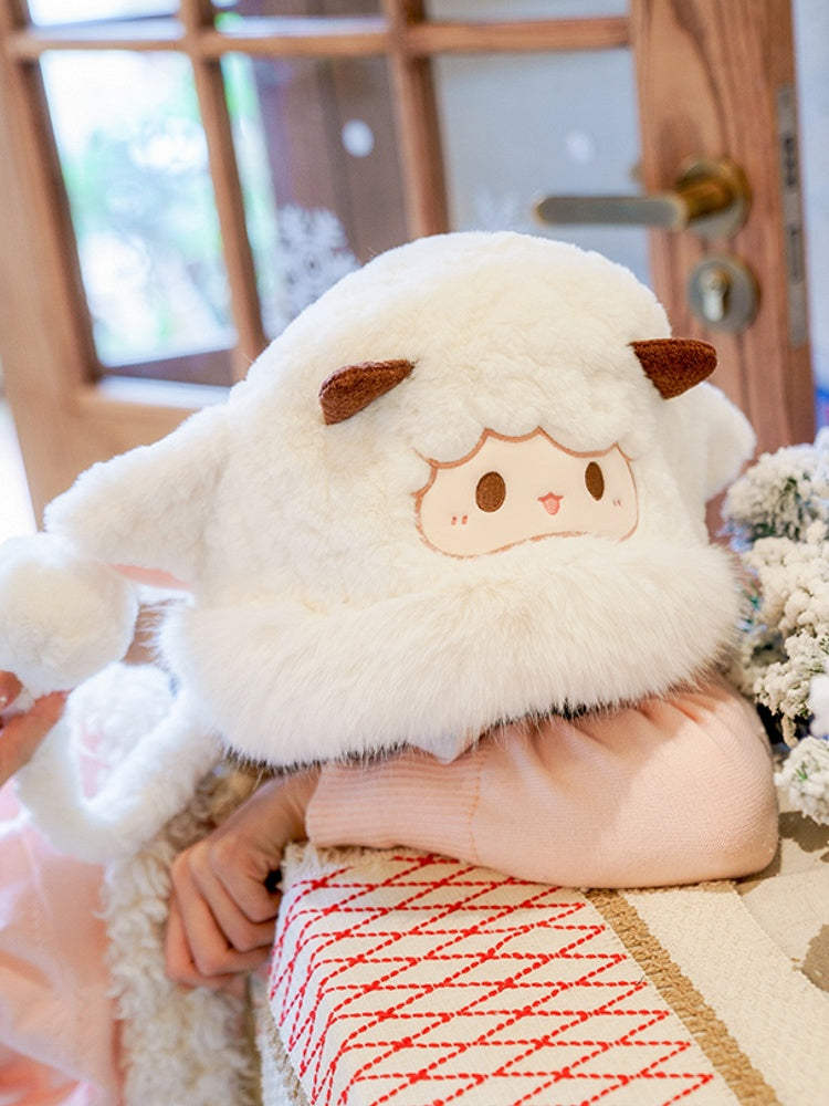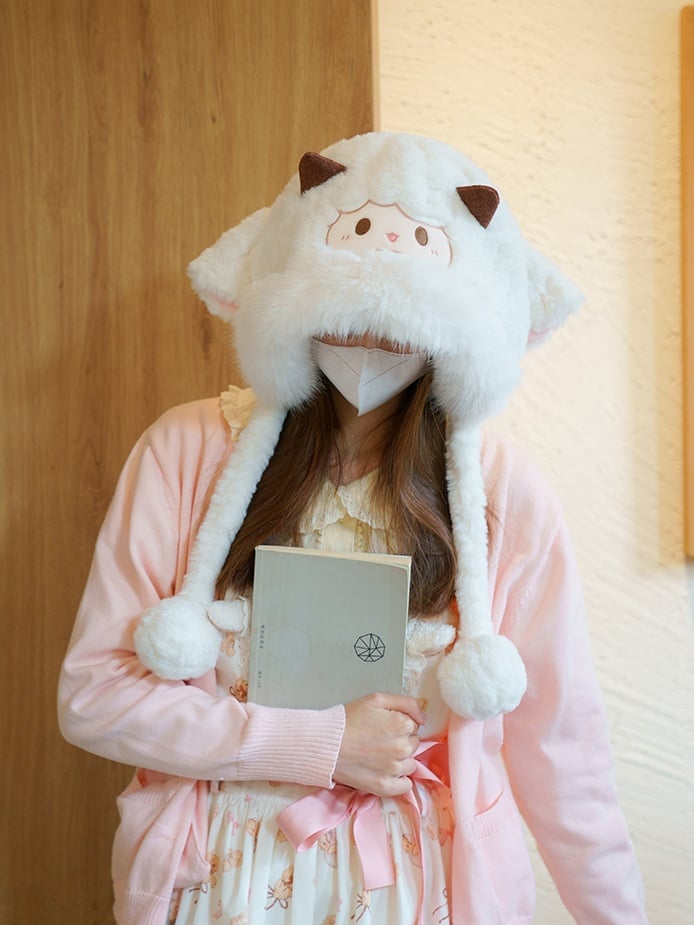 Weiße süße Lamm-Plüsch-Wintermütze