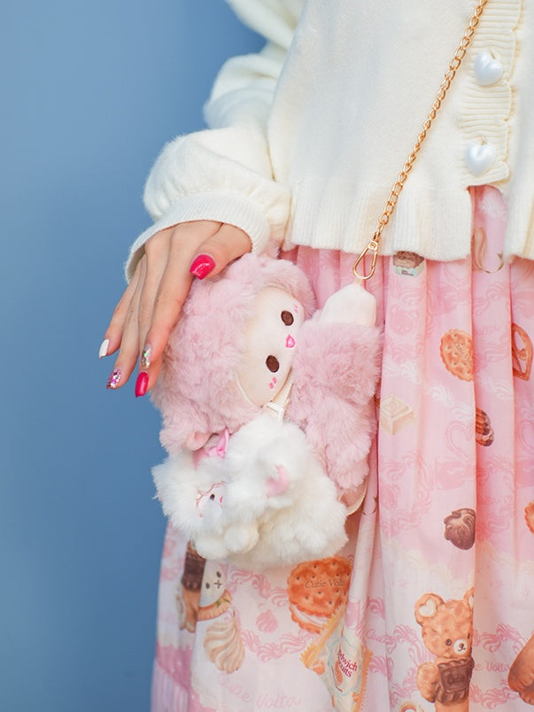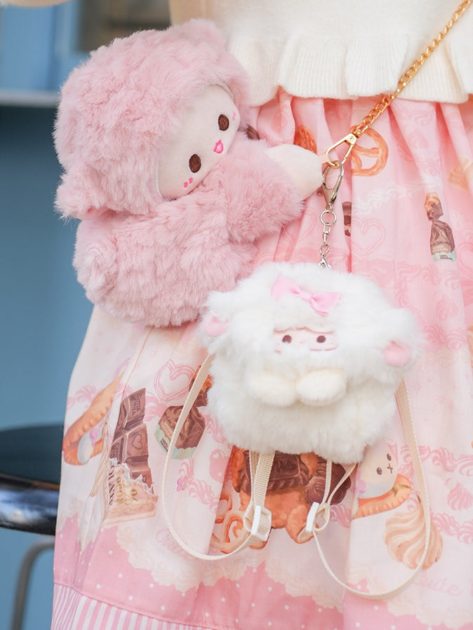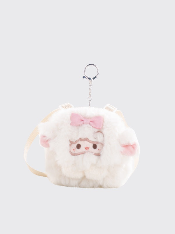 Weißer süßer Schlüsselanhänger in Lammform mit Schleife und Plüsch-Geldbörse