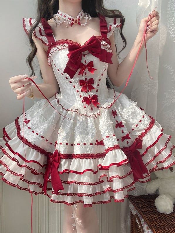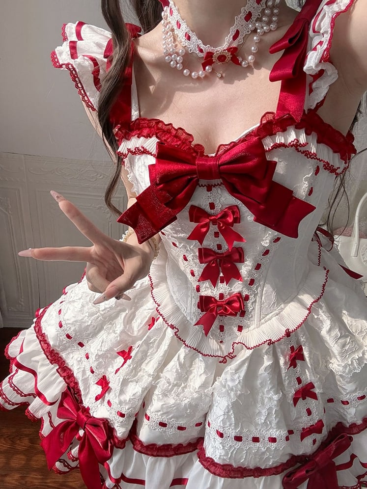Rosa und weißes Old School Lolita Fashion Kleid Bowknot Detais Lolita JSK Set