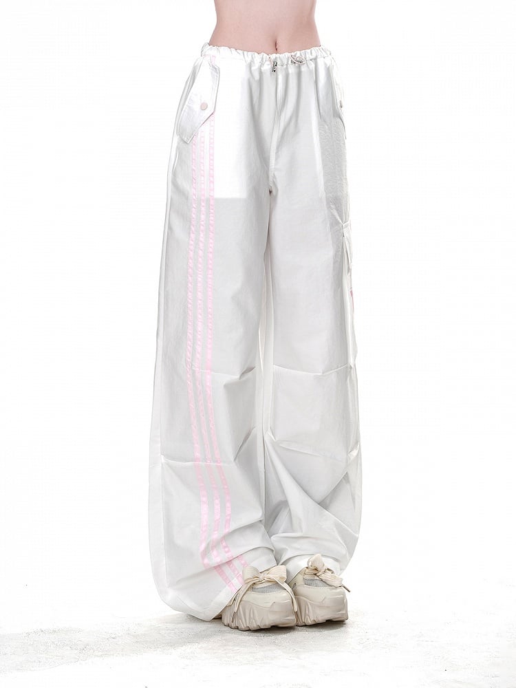 Weiße Cargo-Taschen mit Kordelzug in der Taille und lockerem, geradem Bein