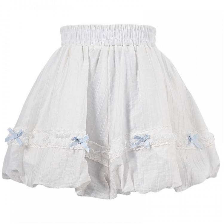 Weiße Pumphose mit elastischer Taille und kontrastierenden Schleifen