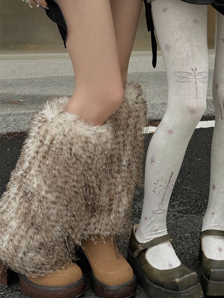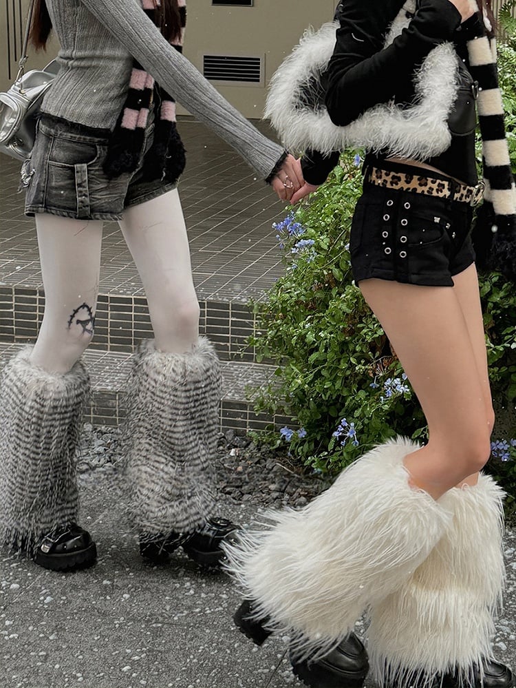 Weiß/Grau/Kaffee Y2K Shaggy Beinwärmer