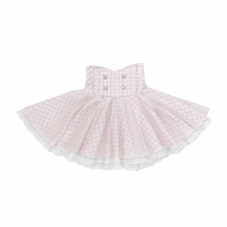 Jirai Kei – Rosa karierter Rock mit hoher Taille und weißem Spitzenbesatz