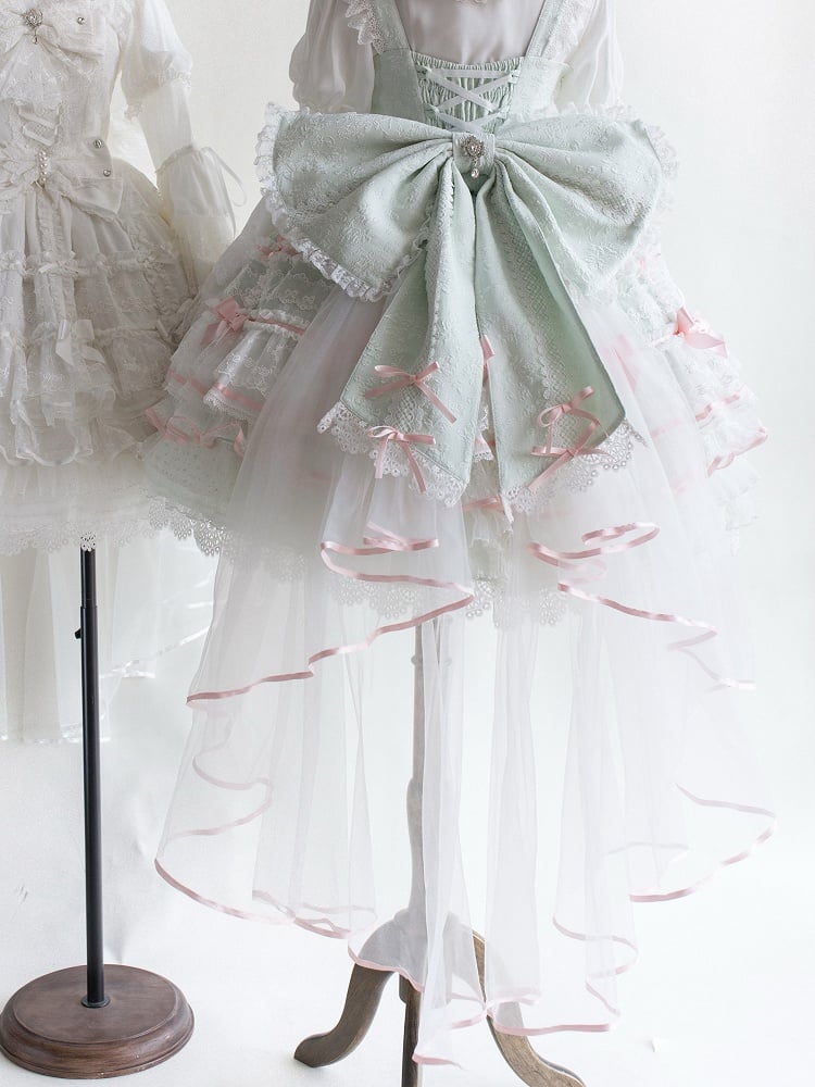 Weiß / Rosa / Blau / Grün Große Schleifenschleppe