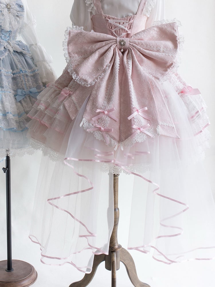 Rosa und weißes Old School Lolita Fashion Kleid Bowknot Detais Lolita JSK Set