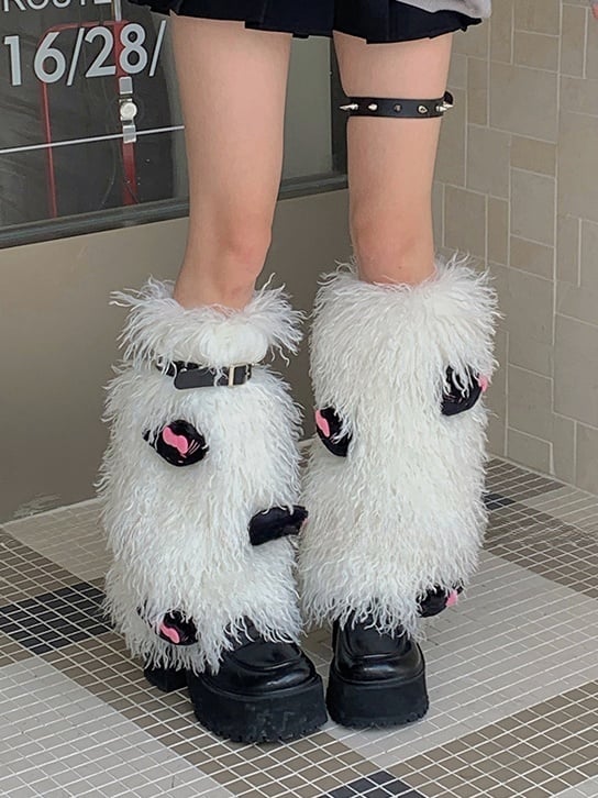 Bleiben Sie warm und süß mit unseren zotteligen Beinwärmern in Weiß/Pink/Kaffee mit Nieten! Hergestellt aus weichem, zotteligem Material und mit niedlichen Kätzchen-Plüschtieren sind diese Beinwärmer perfekt, um Ihre Beine in den kälteren Monaten kuschelig warm zu halten. Zeigen Sie Ihren Kawaii-Stil und bleiben Sie mit diesen Beinwärmern kuschelig warm.
