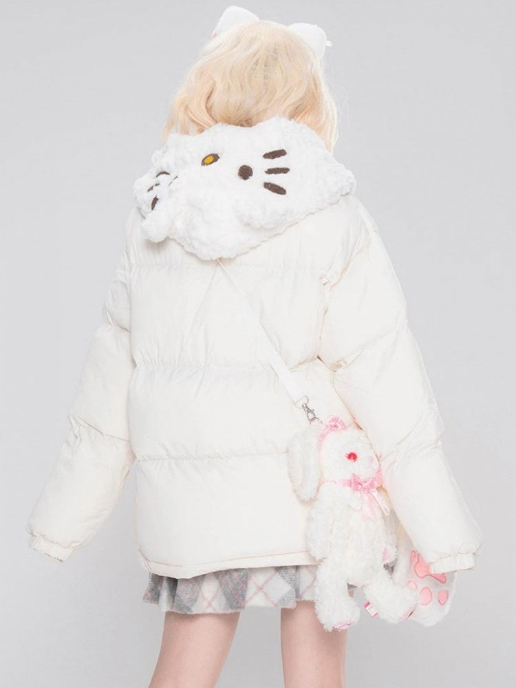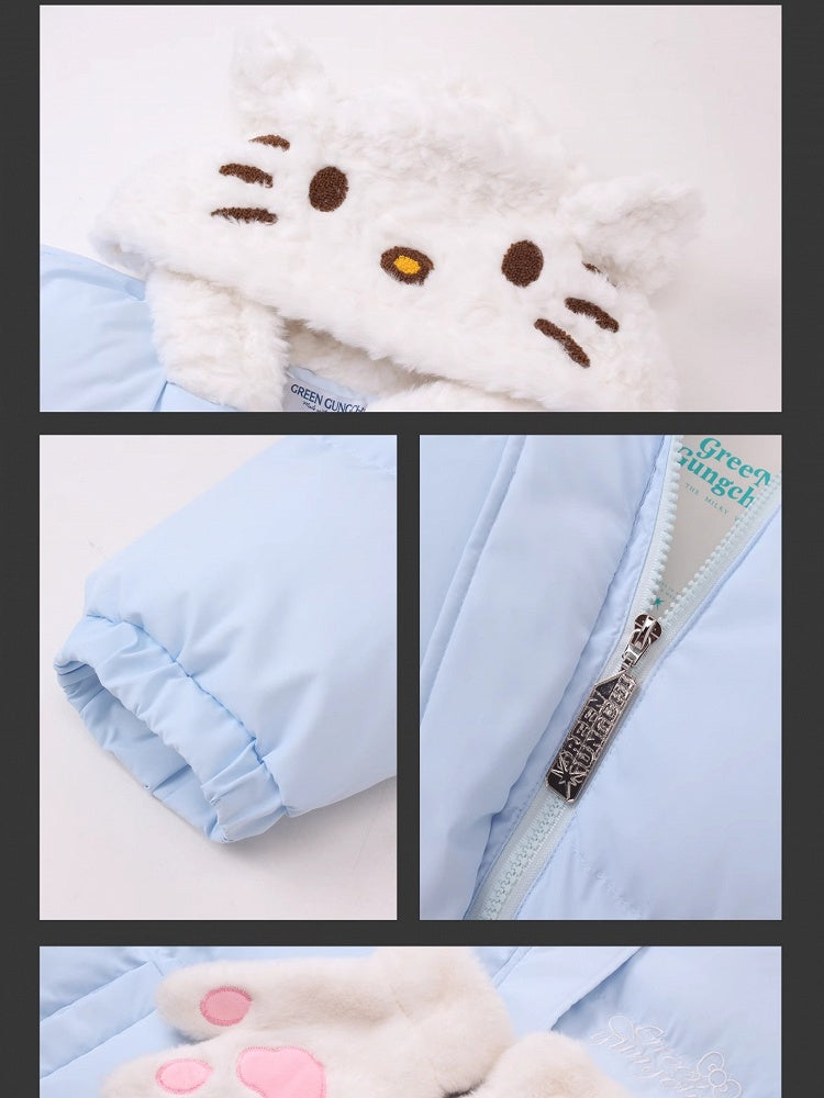 Weiße/rosa/hellblaue Kätzchen-Plüsch-Kapuzenjacke mit dicker Kapuze