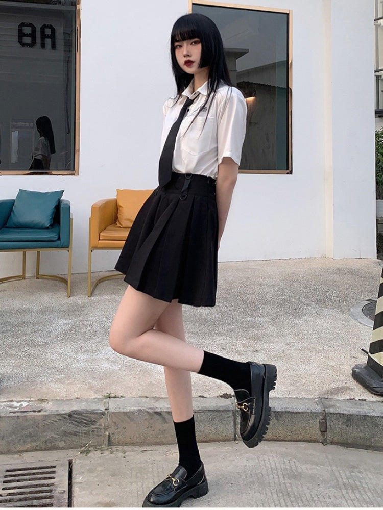 Dieses weiße, adrette JK-Uniform-Hemd mit schwarzer Krawatte ist eine bezaubernde und modische Ergänzung für Ihre Garderobe. Die lockere Passform ist bequem und vielseitig, während die schwarze Krawatte einen Hauch von Eleganz verleiht. Perfekt für jeden Anlass, ist dieses Hemd ein Must-have für jeden stilbewussten Menschen.