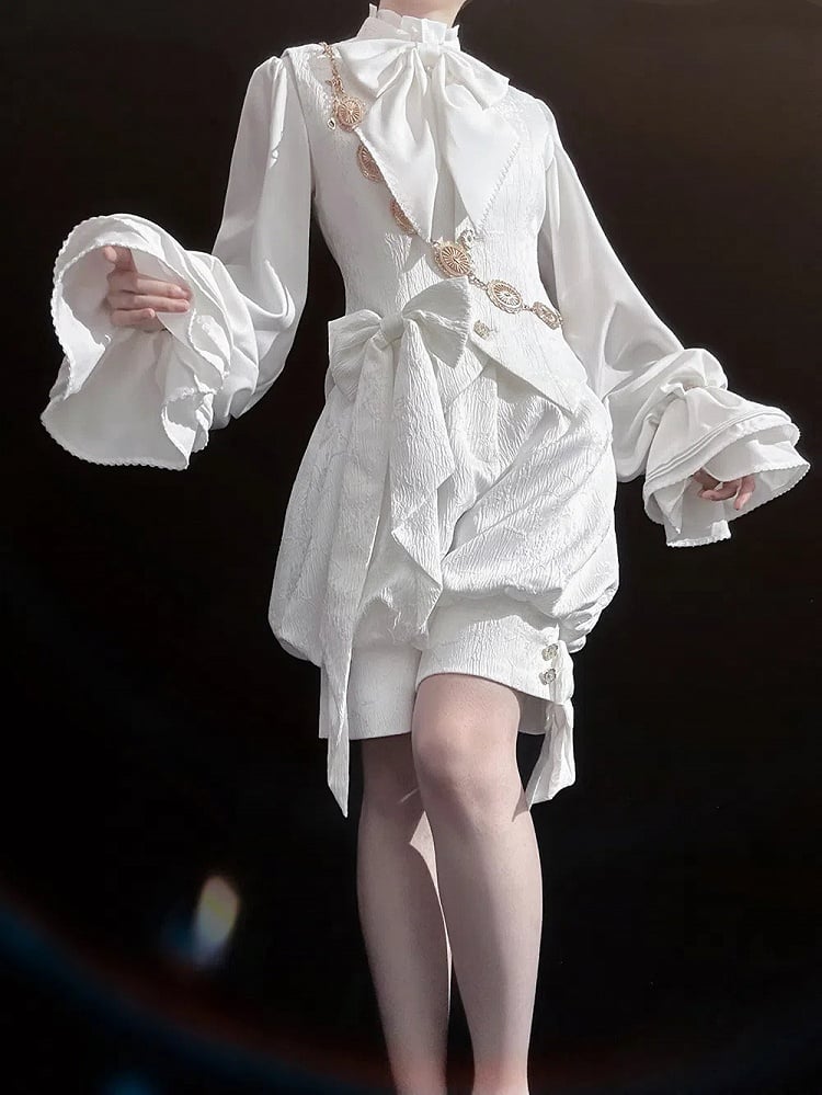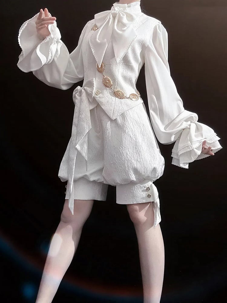 Weiße Ouji Lolita Prince Jacquard-Weste mit Stehkragen