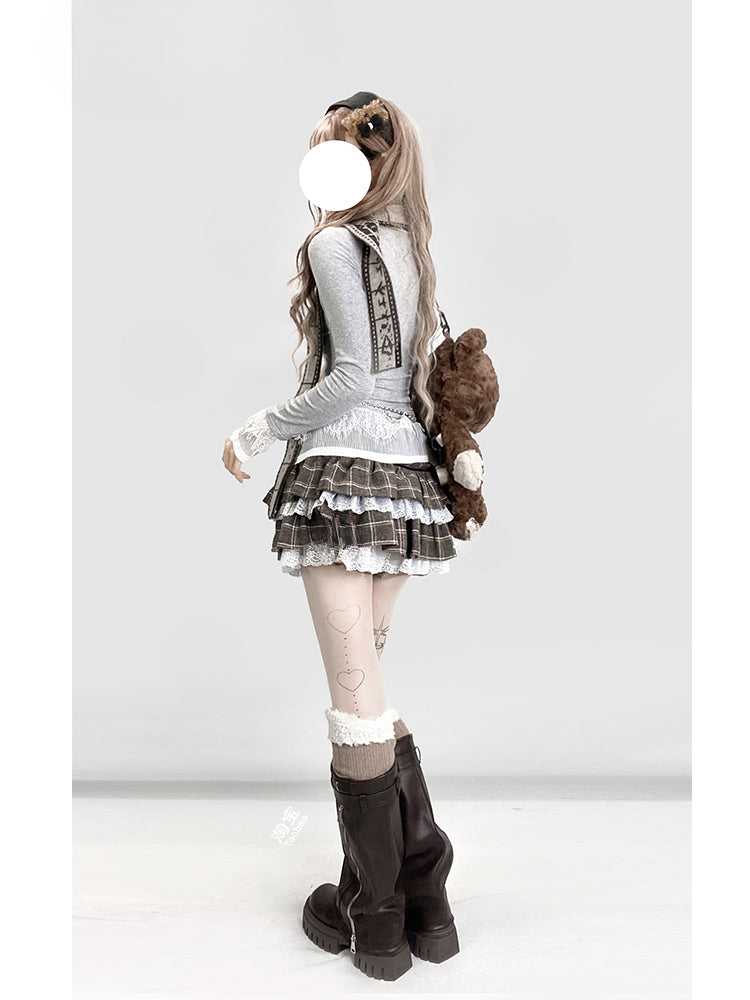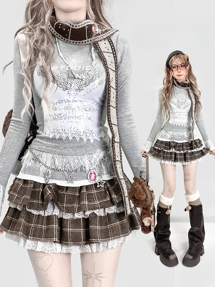Dieses graue Top hat Spitzenbündchen mit einem süßen weißen Aufdruck. Verleihen Sie Ihrem Stil mit einem Hauch von Süße eine besondere Note.