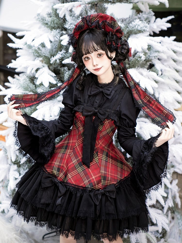 Schwarz-weißes Old School Lolita Fashion Kleid Bowknot Lolita JSK Set