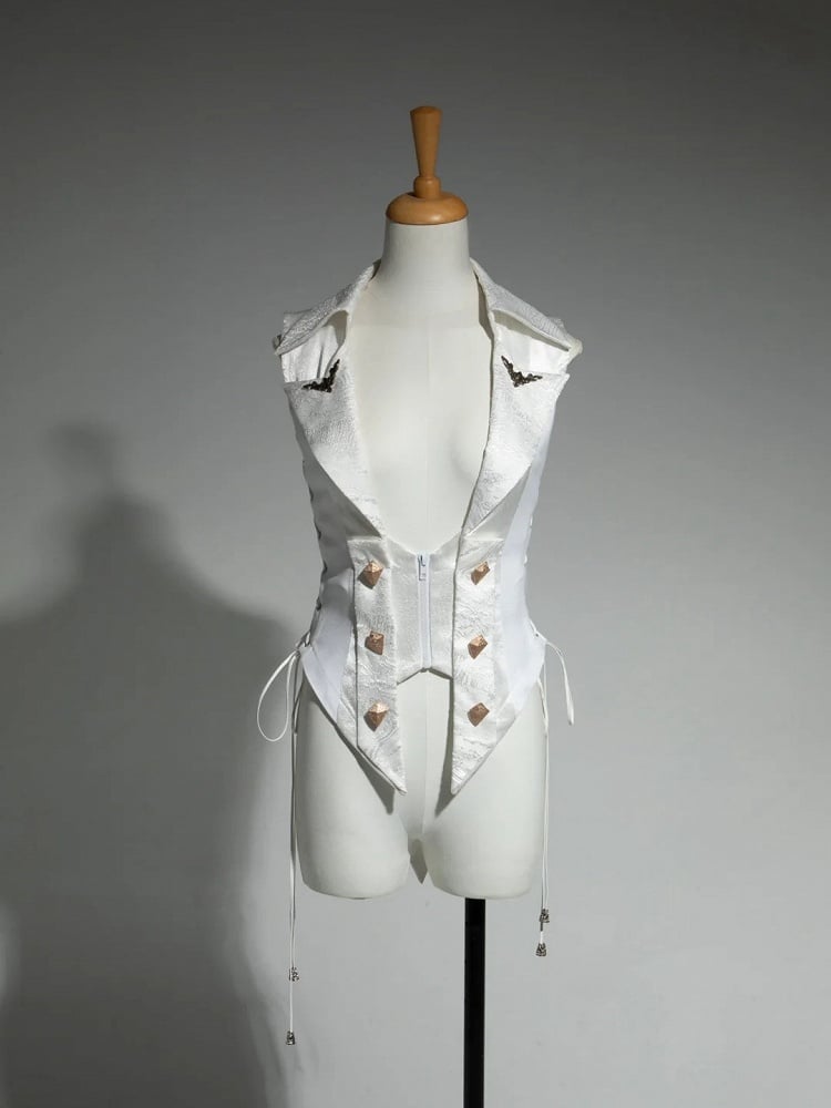Weiße Rüschen Fashion Gothic Abnehmbare Cascading Train Lolita Weste Ouji mit