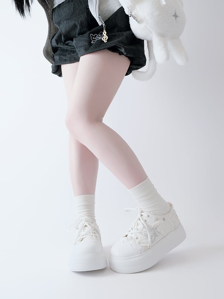 Veredeln Sie Ihren Stil mit diesen bezaubernden Plateau-Sneakers mit weißen Stern-Applikationen. Die einzigartigen weißen Stern-Applikationen verleihen diesen Plateau-Sneakern einen Hauch von Niedlichkeit und machen sie zu einem Must-have für jeden modebewussten Menschen. Bequem und stylisch passen diese Sneaker perfekt zu jedem lässigen Outfit.