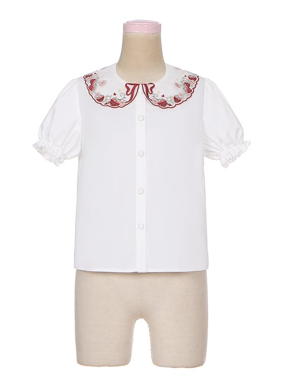 Weißes Lolita-Hemd mit Erdbeer-Peter-Pan-Kragen und kurzen Ärmeln