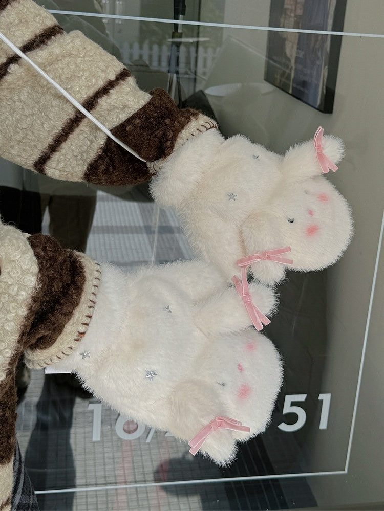 Weiße süße Hasenstern-Plüschhandschuhe mit Schleife