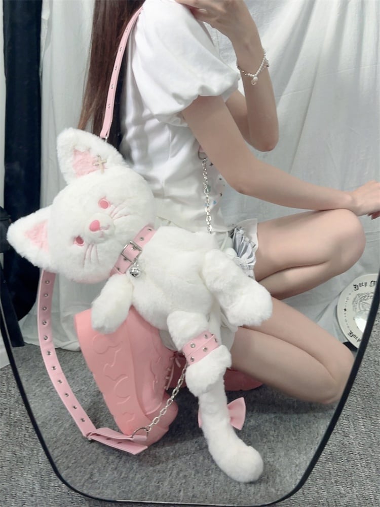 Weißer süßer Kätzchen-Plüsch-Rucksack