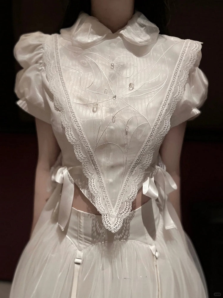 Short Version White/Black Spider Web Embroidered Detachable Sailor Collar
