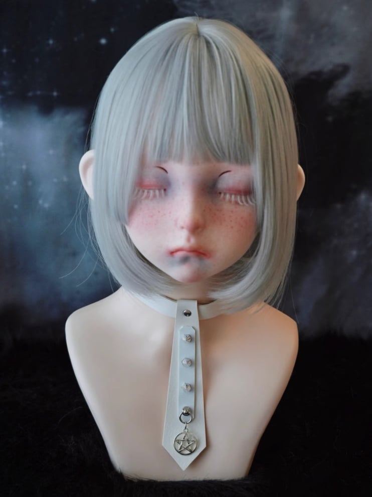 Weißes Halsband mit Pentagramm-Anhänger und Nieten