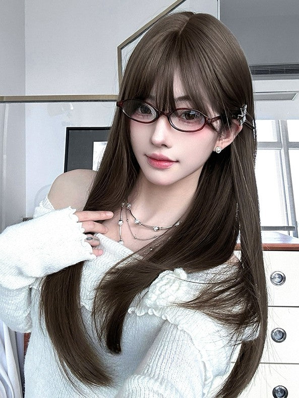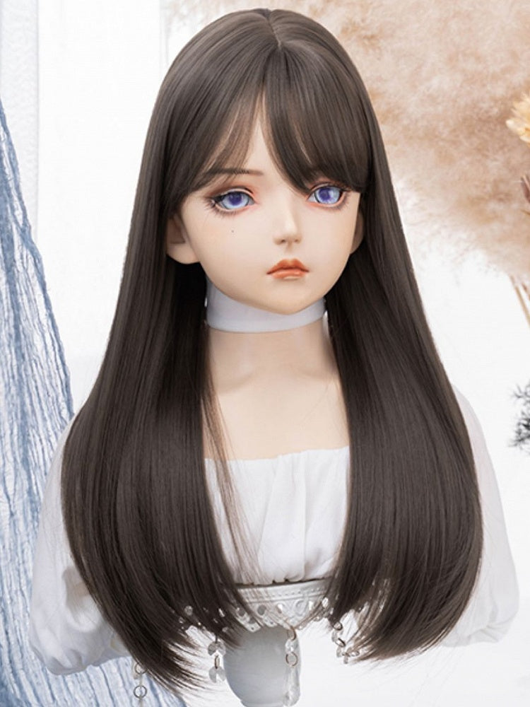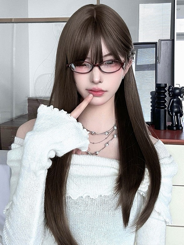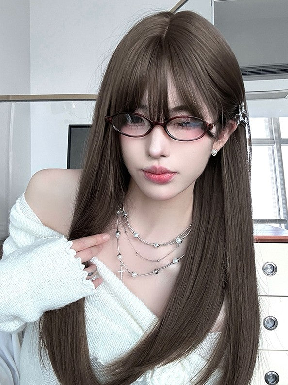 Perücke Pony mit Länge Braun Glatt Air 60CM