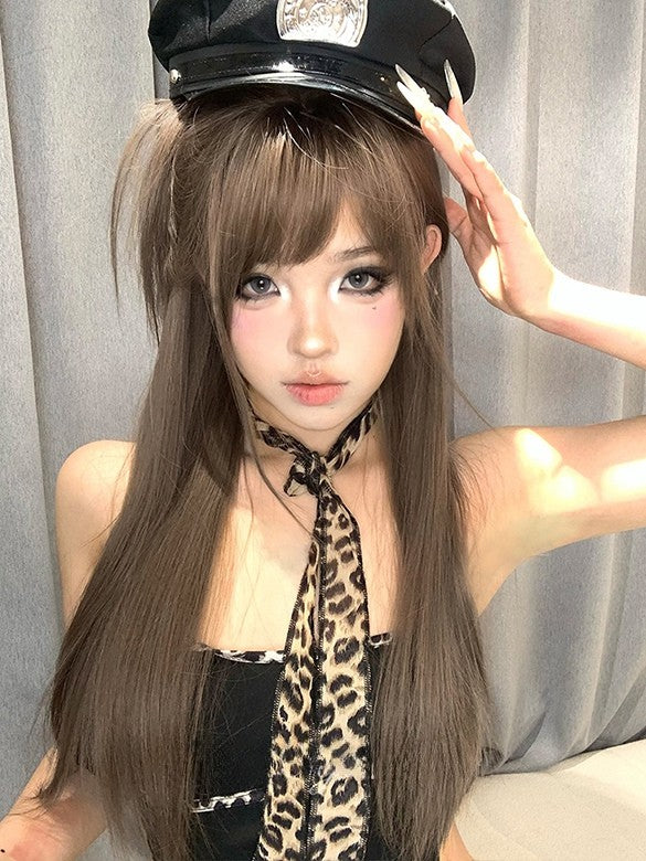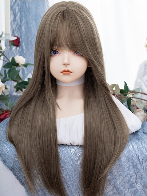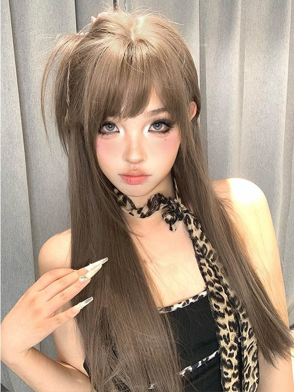 Braune, 70 cm lange, glatte Perücke mit Air-Pony