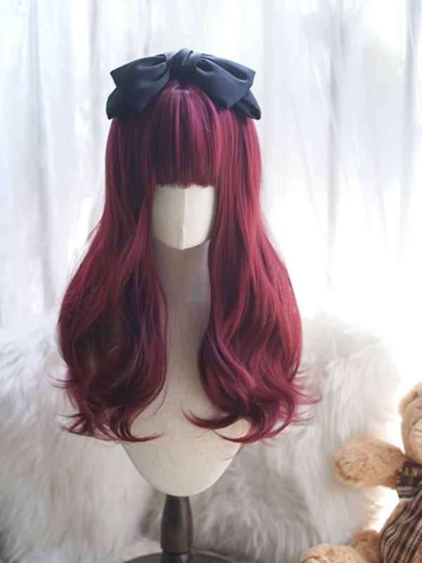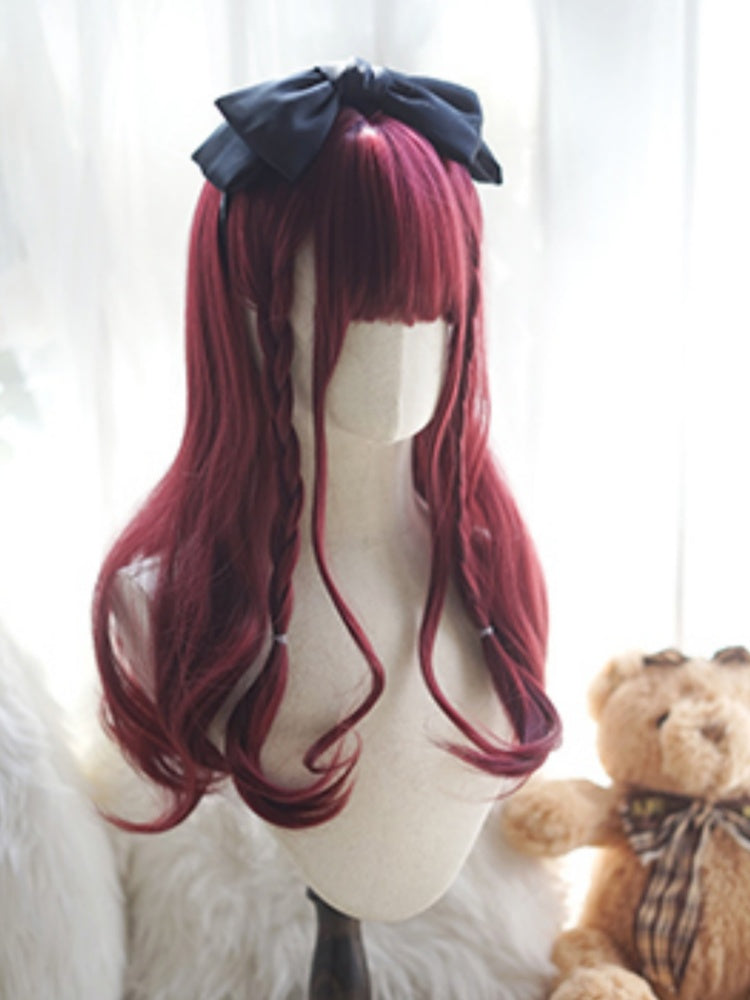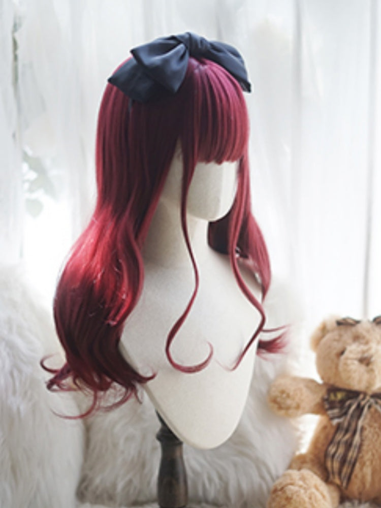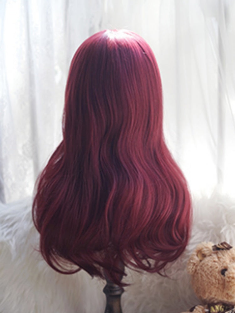 Weinrote, lange, gewellte Perücke mit vollem Pony