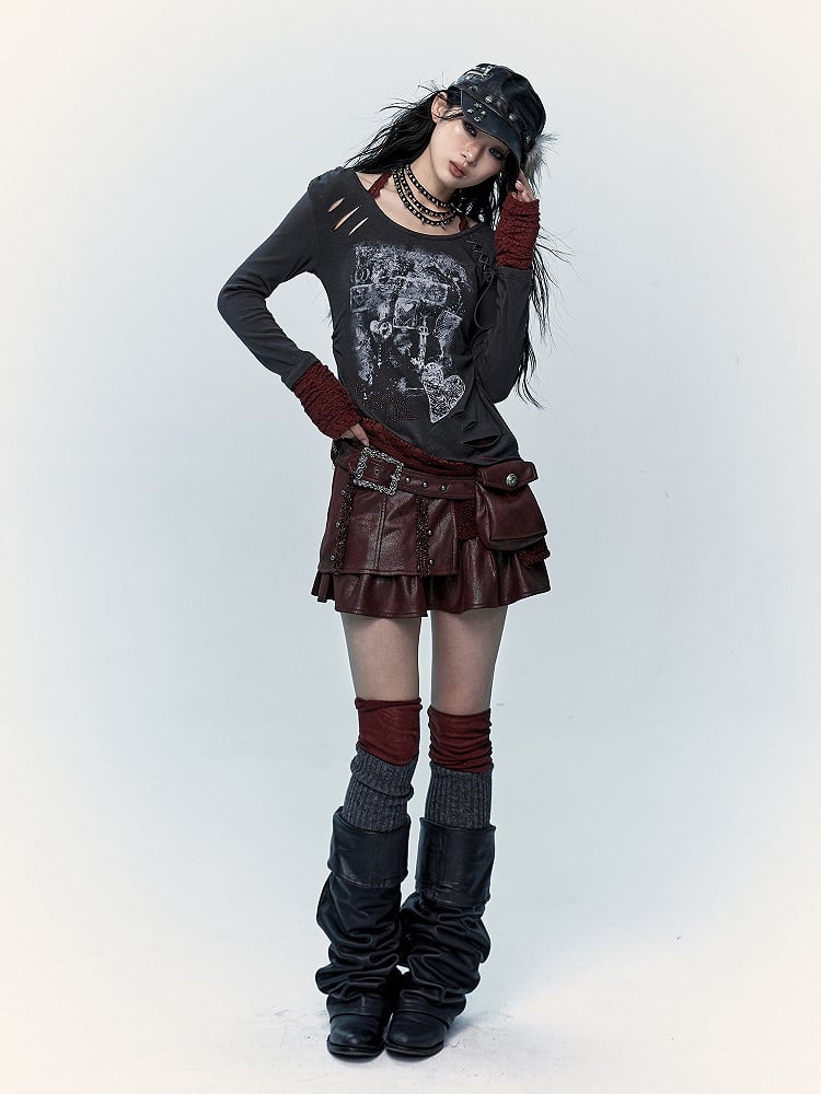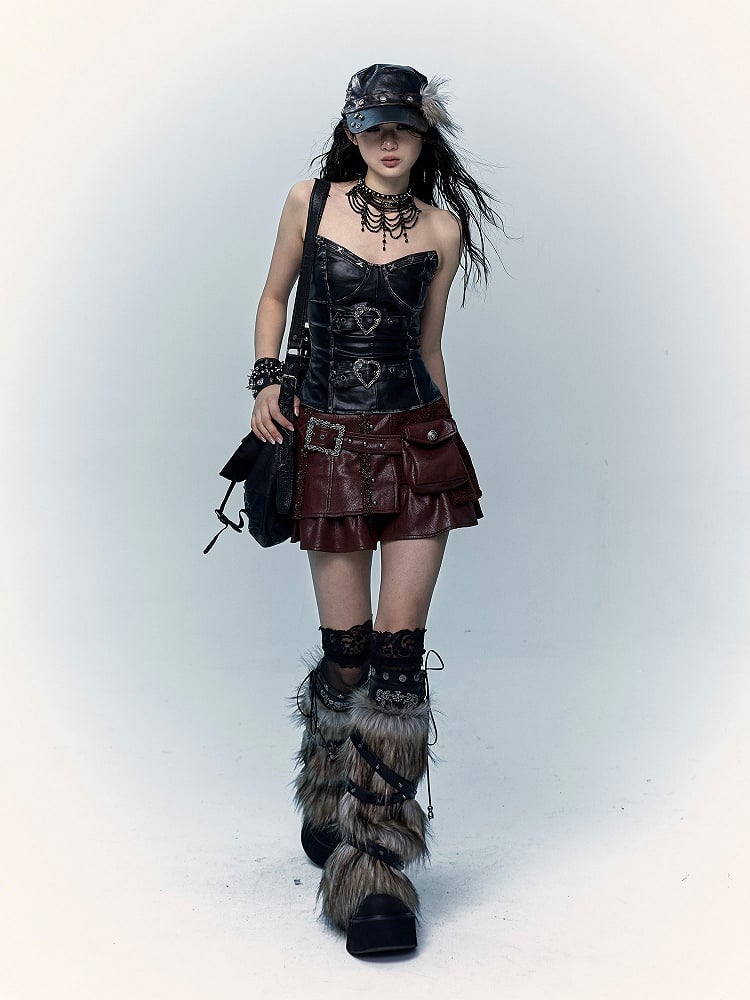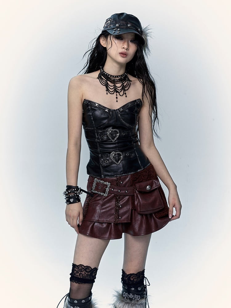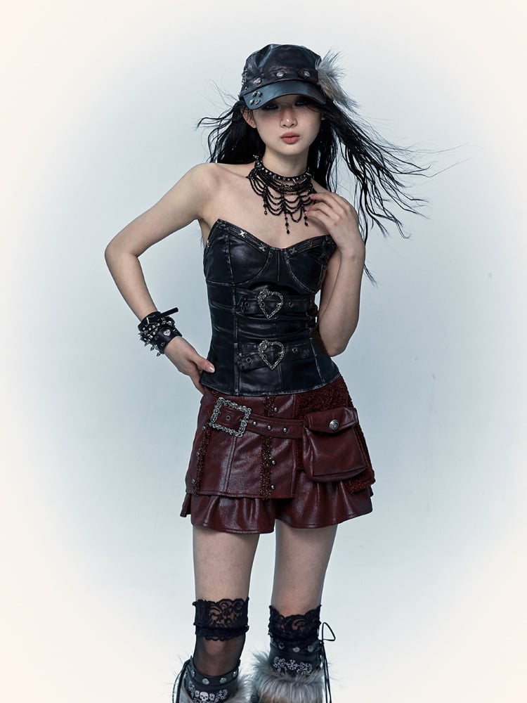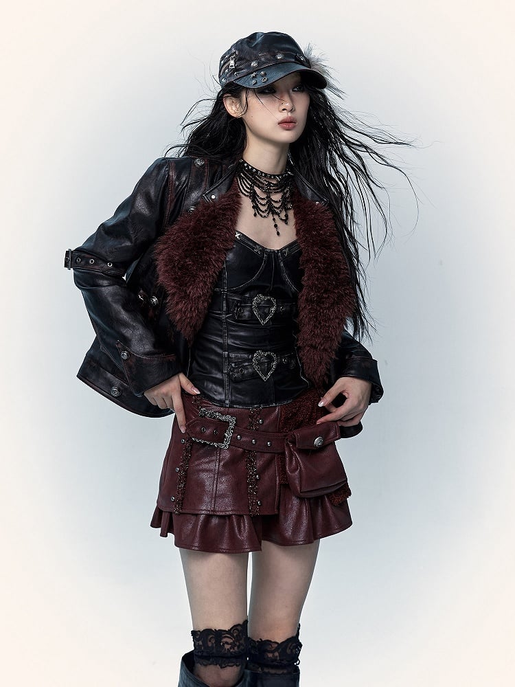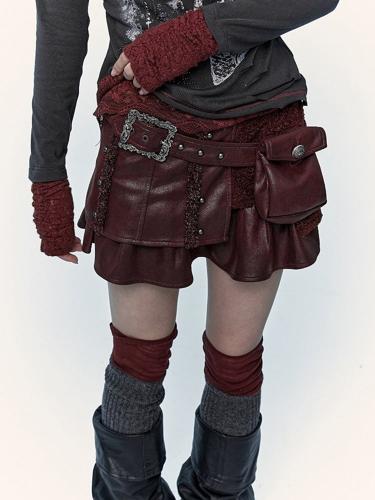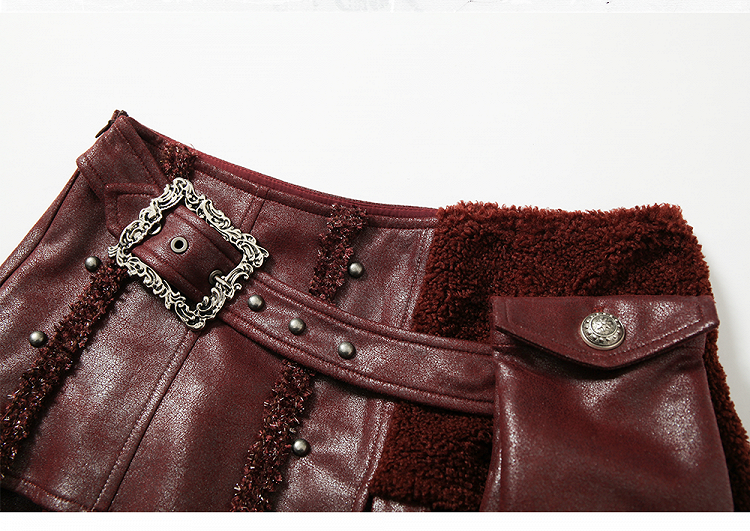 Werten Sie Ihre Garderobe mit diesem atemberaubenden weinroten Leder-Minirock mit auffälligem Schnallendesign auf. Der satte, tiefrote Farbton verleiht ihm einen Hauch von Eleganz, während das glatte Ledermaterial ihm einen modernen Touch verleiht. Dieser Rock passt perfekt zu lässigen und eleganten Oberteilen und ist eine vielseitige Ergänzung für jede trendige Garderobe. Das Schnallendetail unterstreicht nicht nur den Stil, sondern sorgt auch für eine verstellbare Passform für Komfort und Bequemlichkeit. Ob für einen Abend in der Stadt oder einen schicken Tagesausflug – dieser Rock setzt garantiert ein starkes Statement.