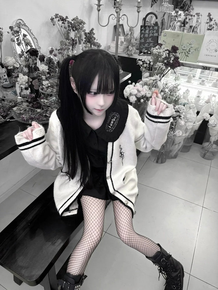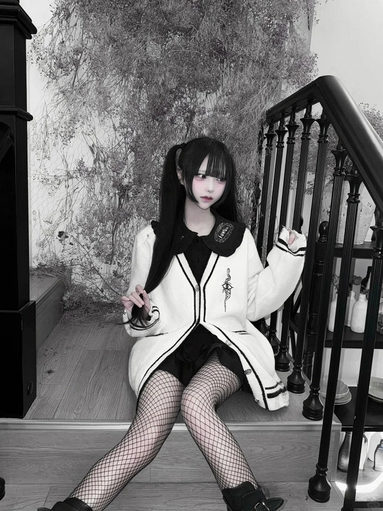 Schwarz-weißes Old School Lolita Fashion Kleid Bowknot Lolita JSK Set