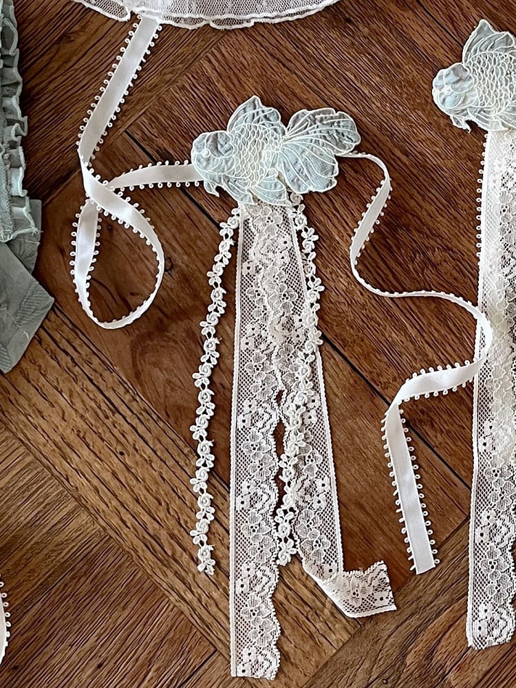 Pink/Blau/Grün Sweet Lolita Spitzenhalsband mit Goldfisch-Stickerei