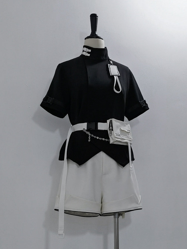 mit Techwear Cyberpunk-Hüftgürtel, weiße Taschenschnalle