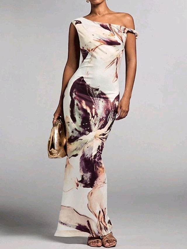 Dresses Type: Print Dress, Fabric: Polyester, Gender: Women's, Design: Print, Occasion: Weekend, Outdoor, Going out, Style: Fashion, Fit Type: Regular Fit, Dress Length Type: Long Dress Maxi Dress, Neckline: One Shoulder, Sleeve Length: Sleeveless, Elasticity: Micro-elastic, Look After Me: Machine wash, Pattern: Flower, Season: Summer,