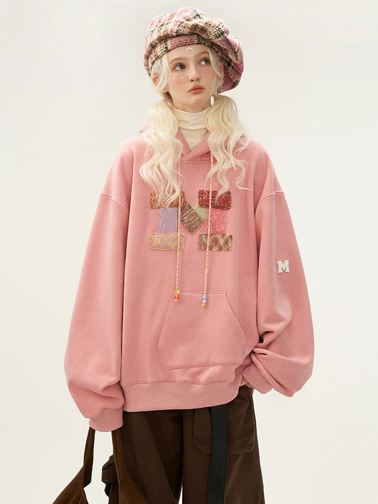Bleiben Sie gemütlich und stylisch mit unserem Wool Logo Hooded Loose Splicing Hoodie. Dieser Hoodie aus weicher und warmer Wolle besticht durch sein süßes und verspieltes Design und verleiht Ihrer Garderobe einen Hauch von Niedlichkeit. Die lockere Passform und die Spleißdetails sorgen für zusätzlichen Komfort und einzigartigen Style. Bleiben Sie mit diesem Hoodie modisch warm!