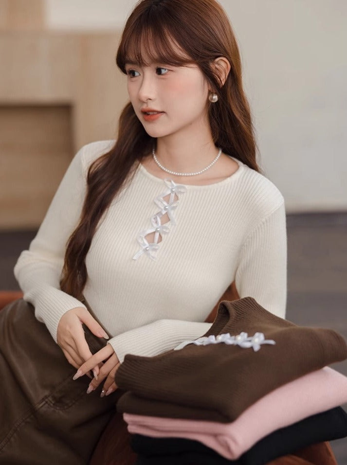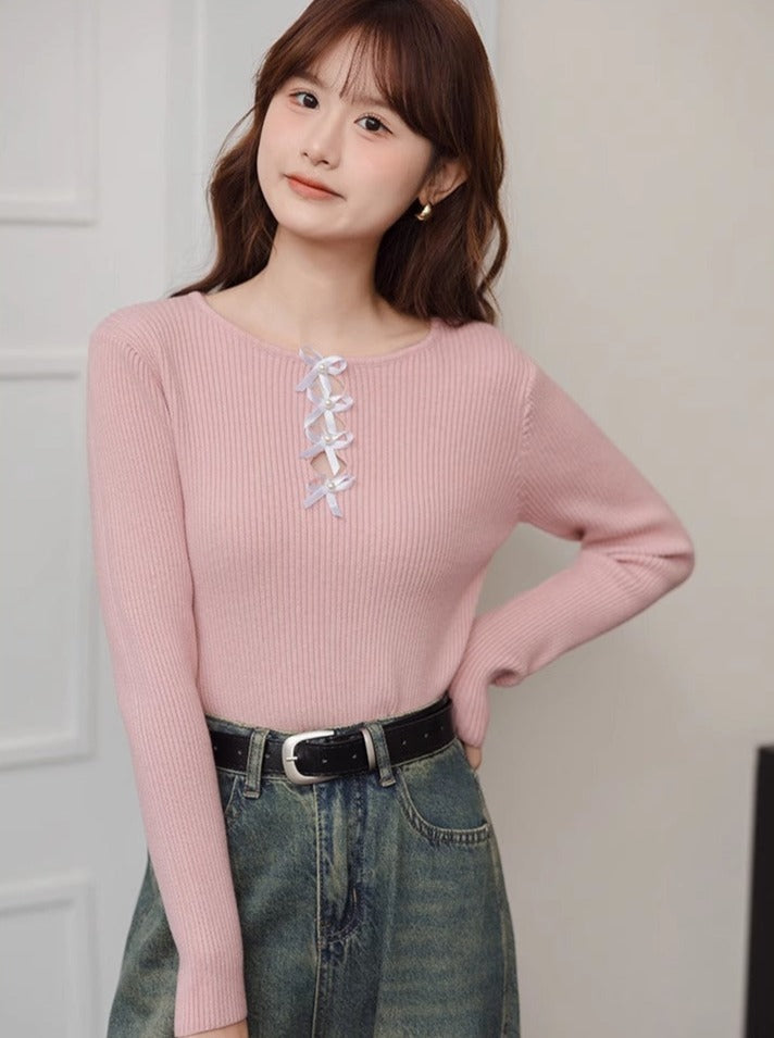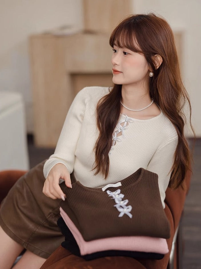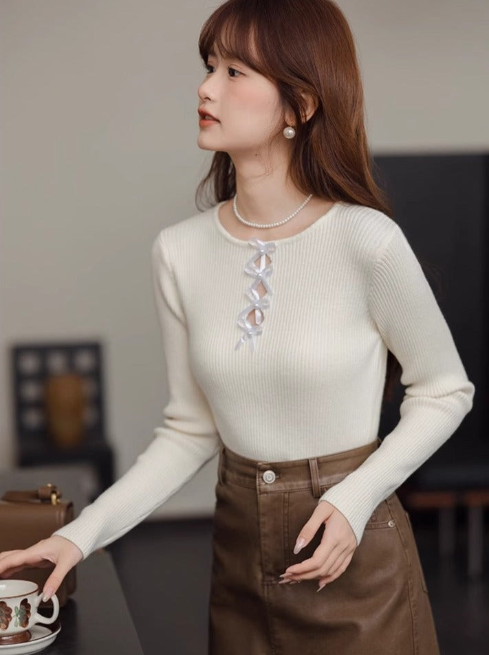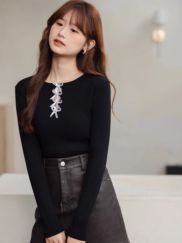 Dieses weite, schmale Oberteil mit Wollkragen und rundem Halsausschnitt besticht durch sein charmantes Schleifendesign, das Ihrer Garderobe einen Hauch von Niedlichkeit verleiht. Die lockere und schmale Passform bietet Komfort und Stil und macht es zur perfekten Ergänzung für jedes Outfit.