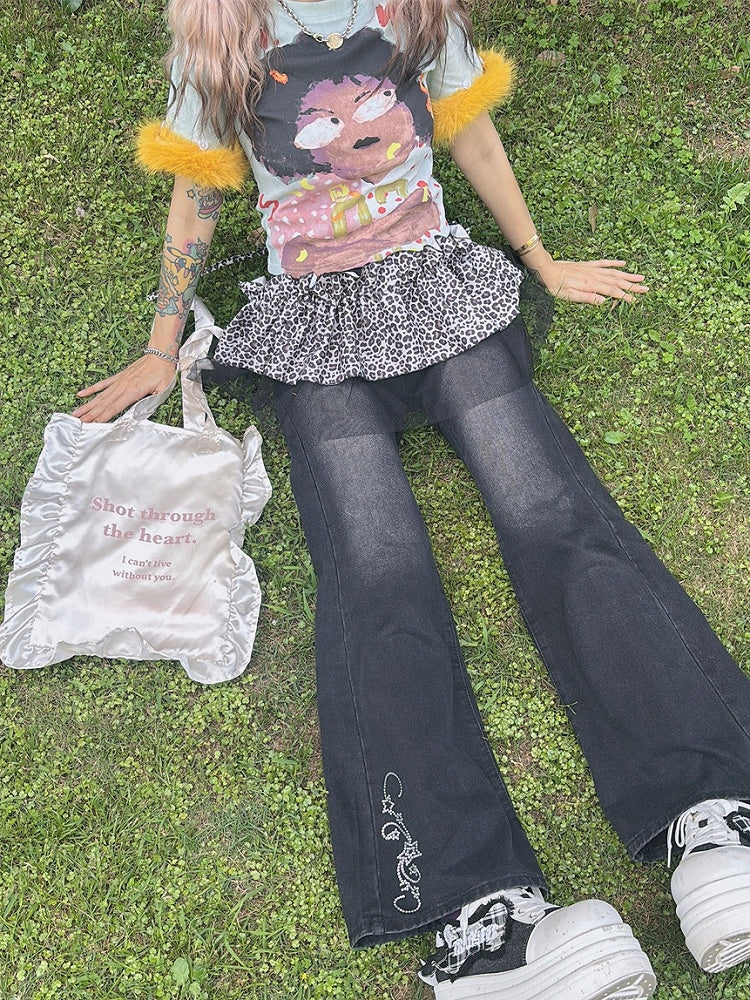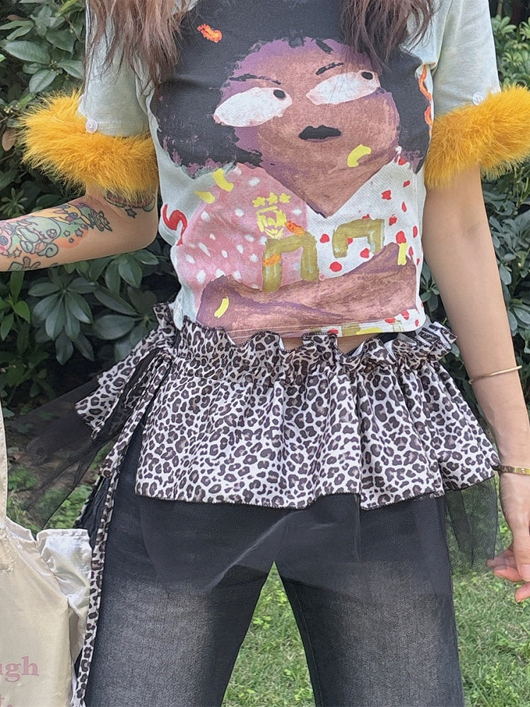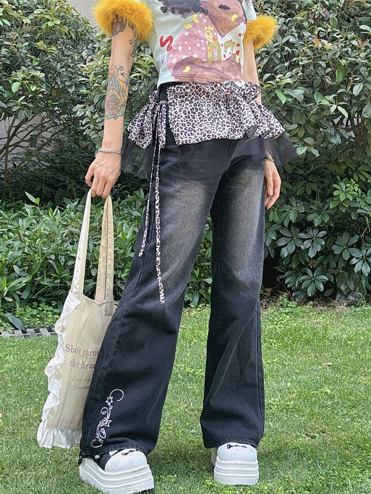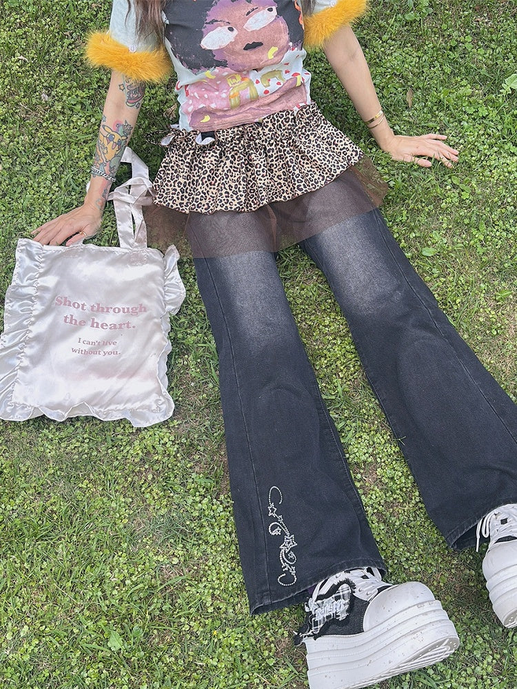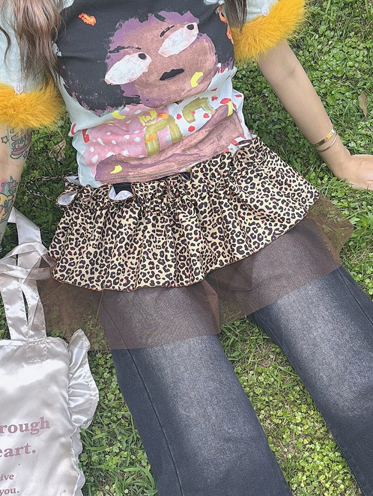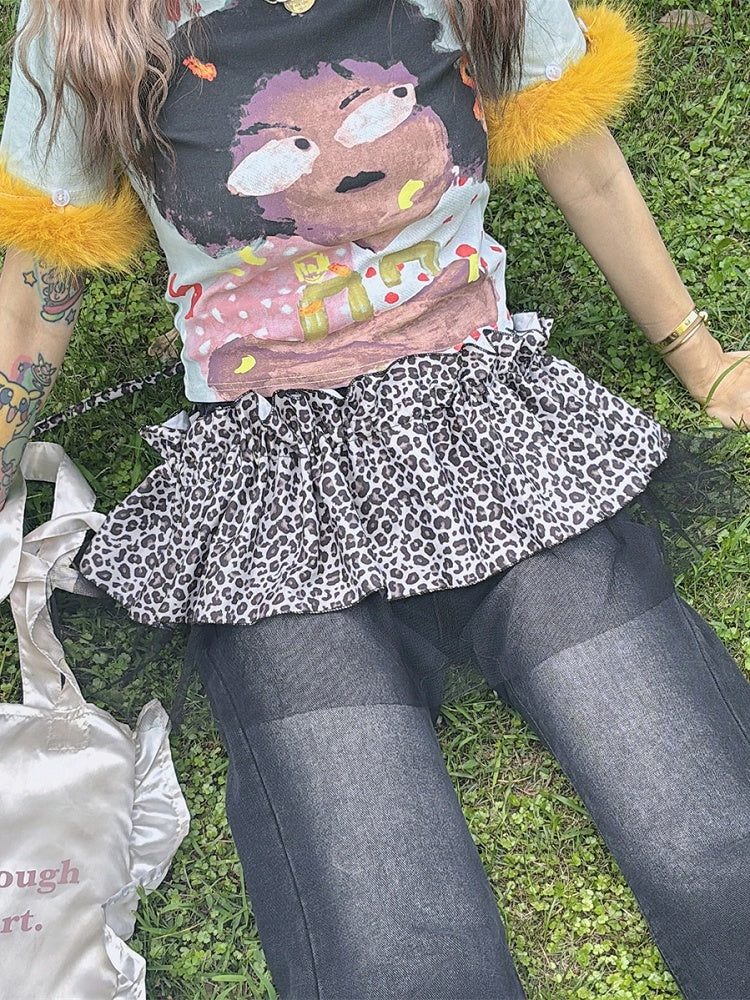 Y2K Accessoire Leopard Glamouröses Braun/Grau Muster Hosenbesatz Spitze