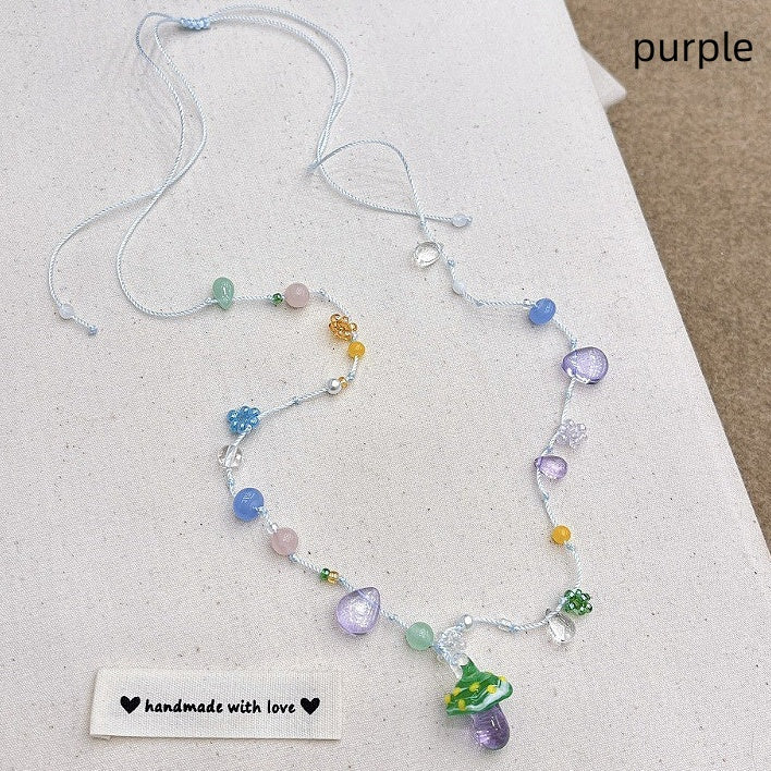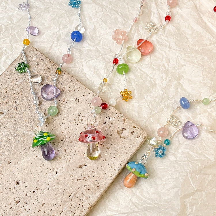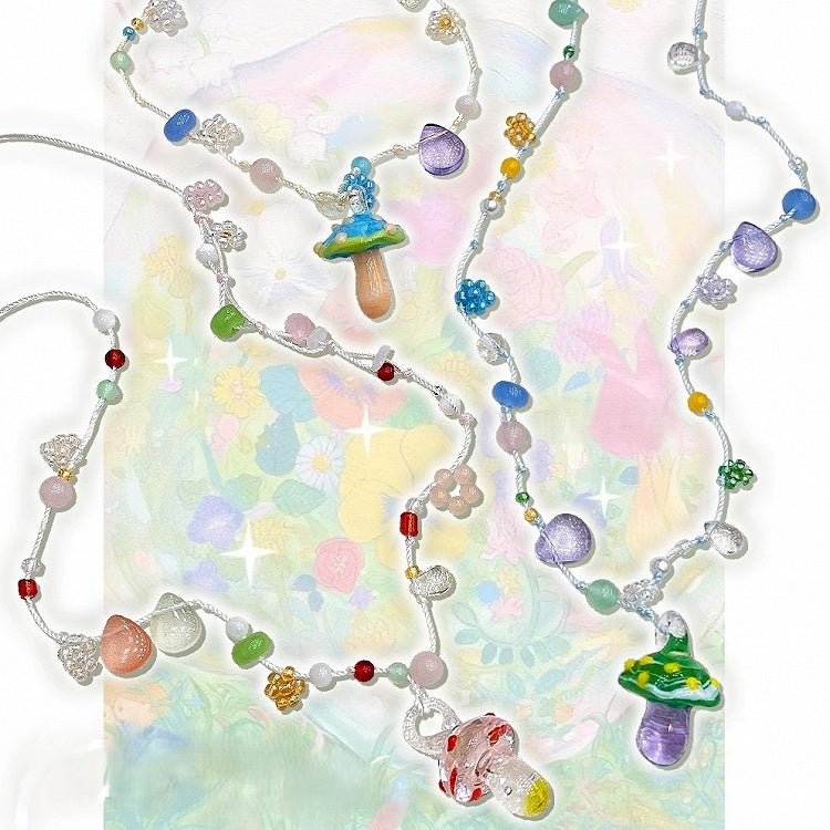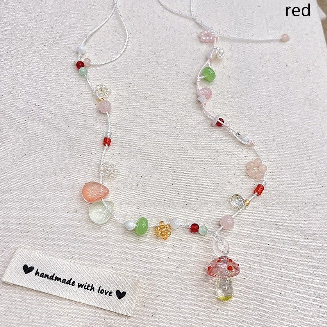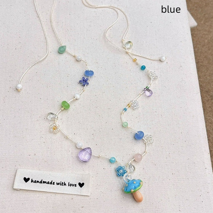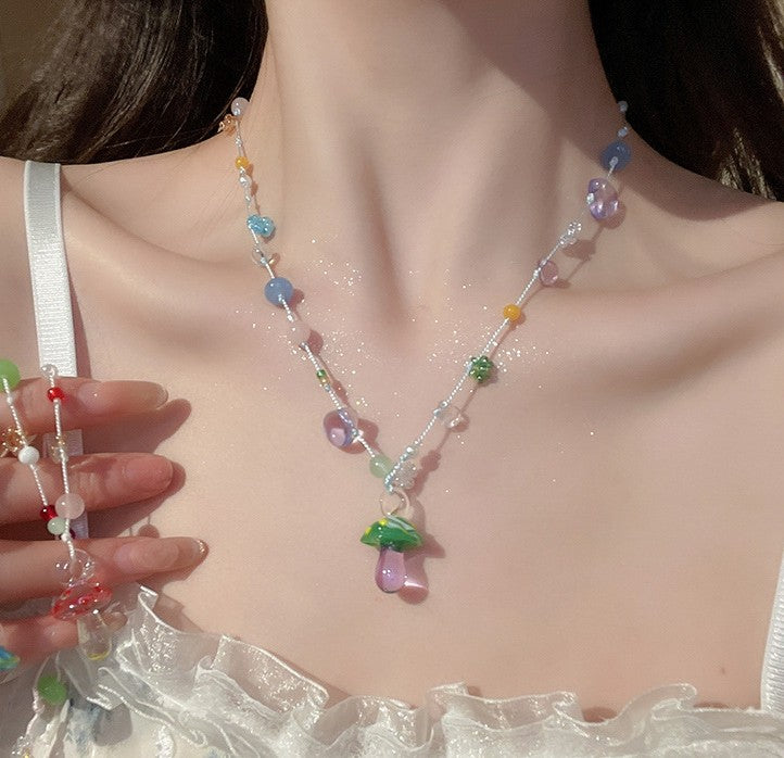 Blau/Rot/Lila Y2K Süße Pilz Perlen Halskette