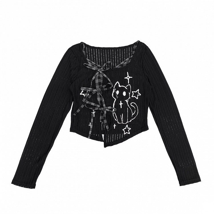 Y2K Coverup Set Kariertes Cami Top mit Kätzchen Print Schwarz Rot/Grau