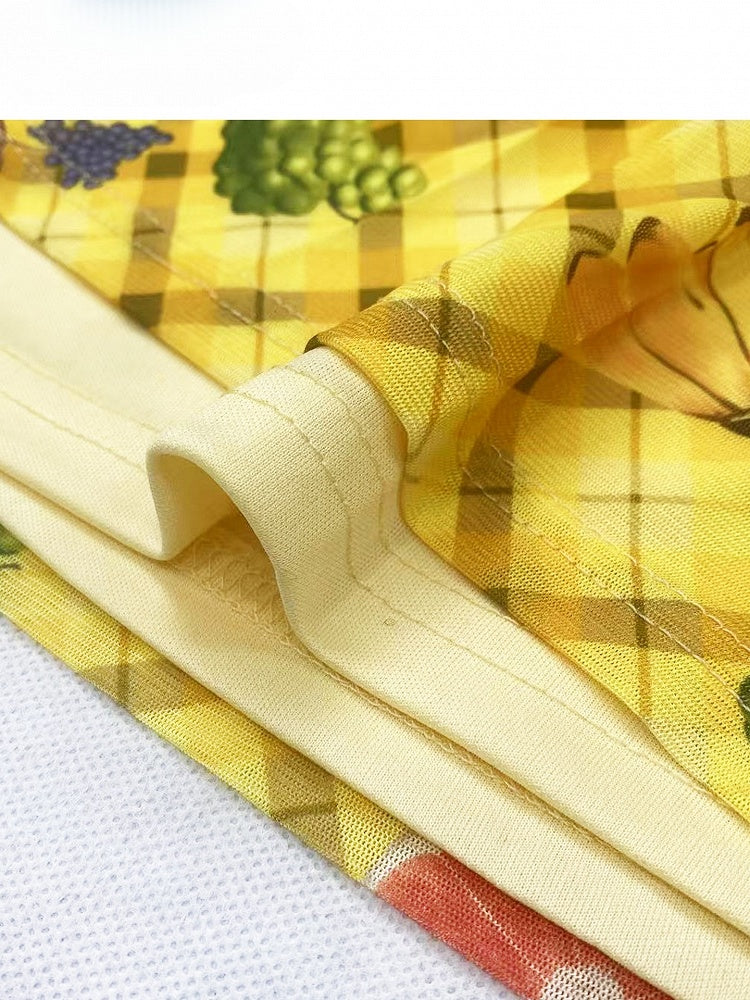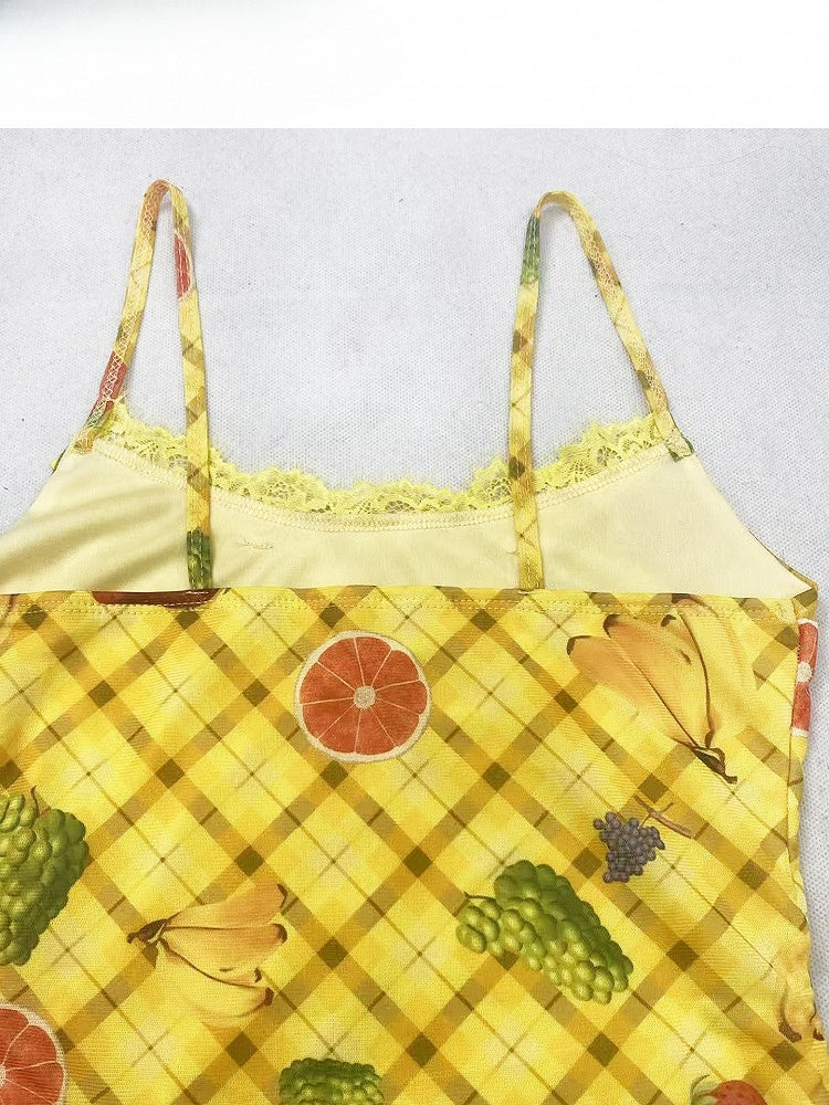 Y2K Muster Plaid Brief Hals + Gelb Obst Neckholder Cami Print Bittersüße Kleid Top Und Rot