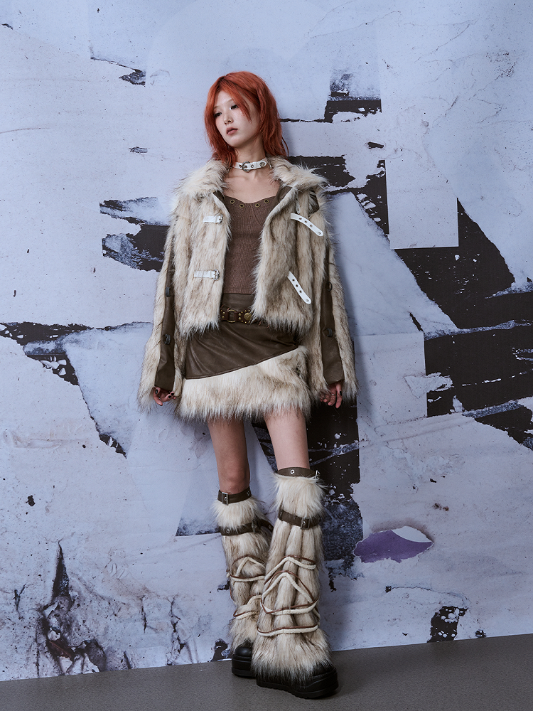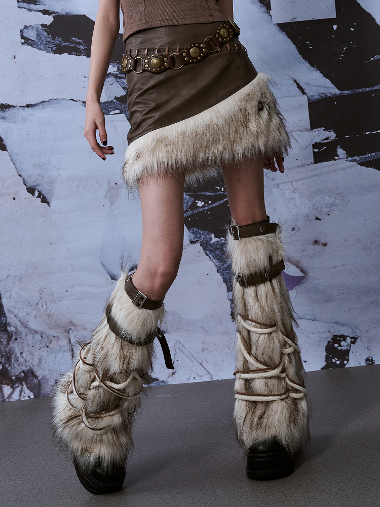 Y2K Stulpen Beige Bein Weiß mit PU verstellbaren Riemen