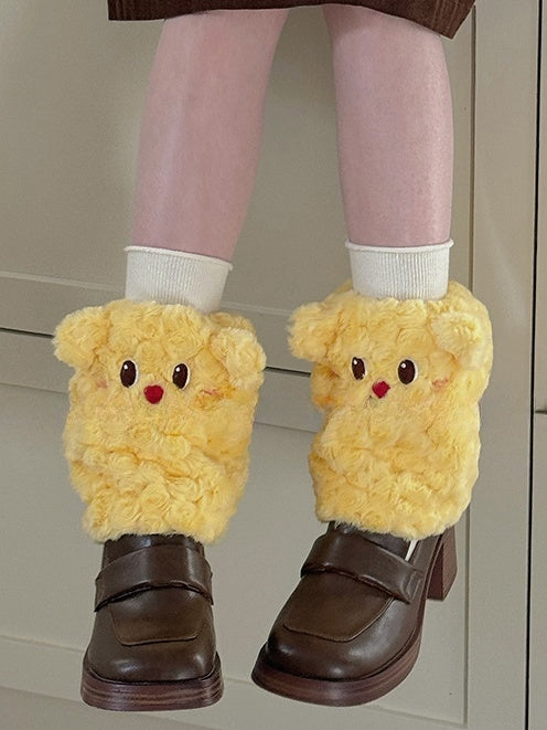 Gelbe süße Bären-Plüsch-Beinwärmer