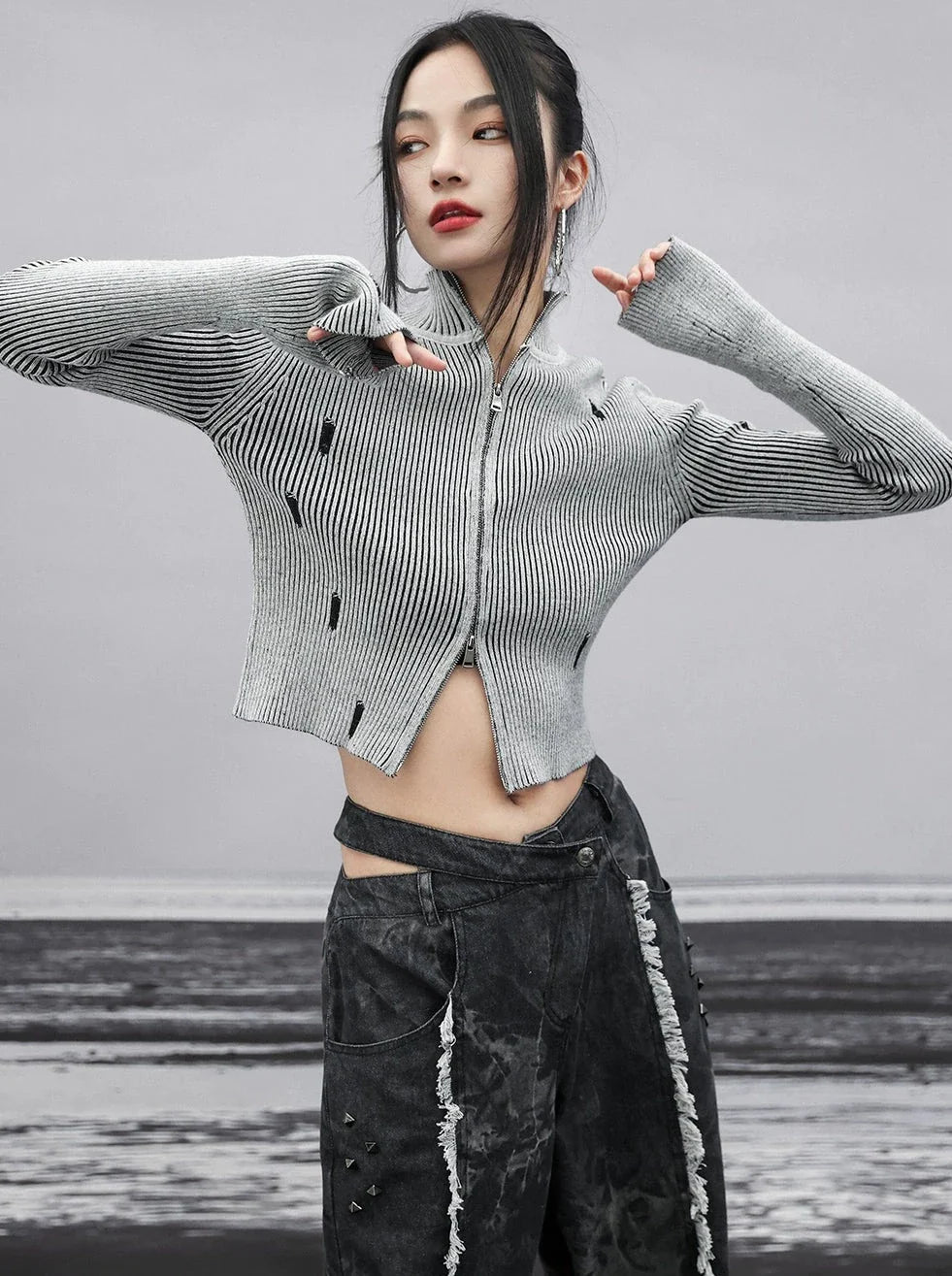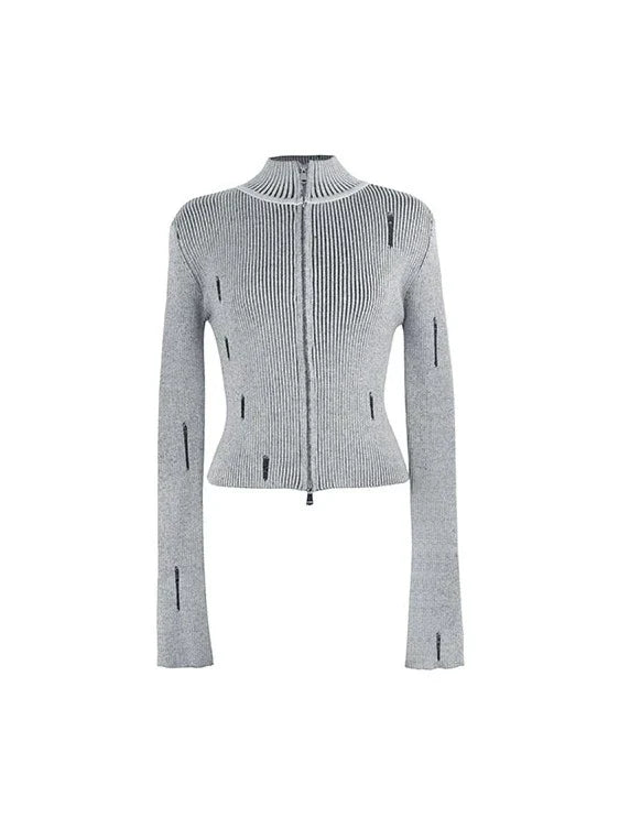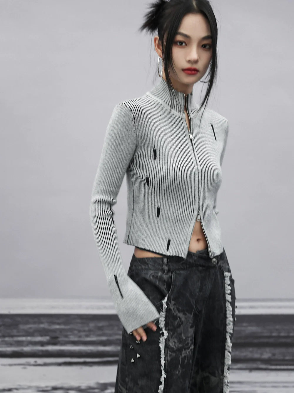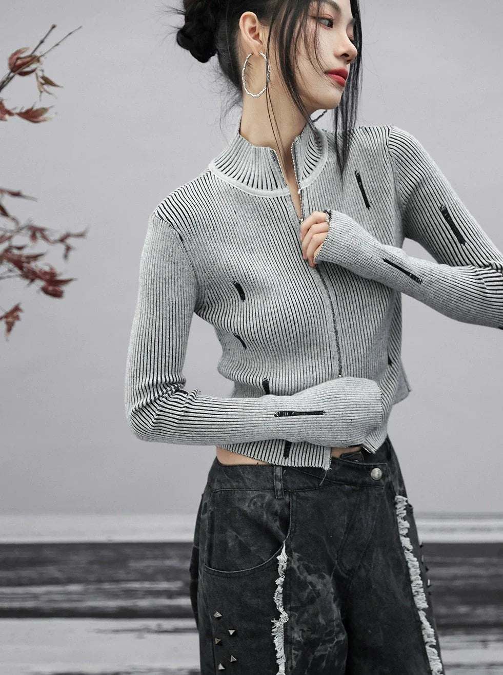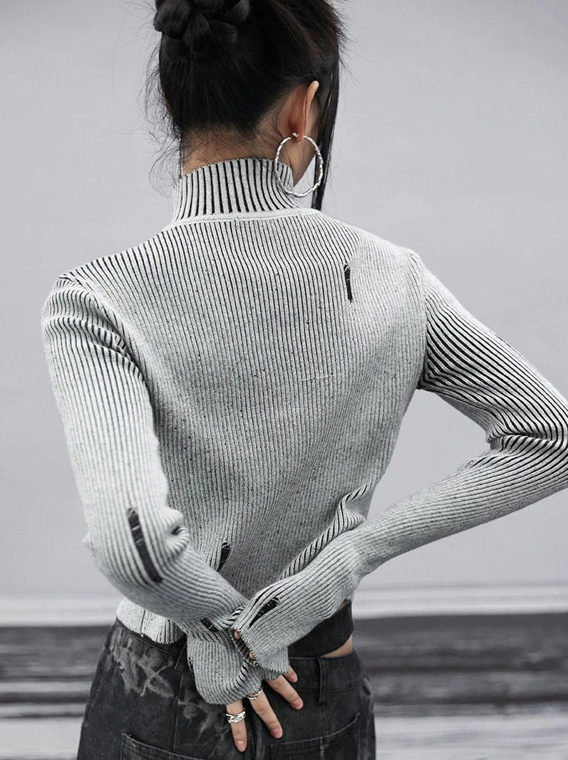 Gerippte Strickoberteile mit Reißverschluss und halbem Halsausschnitt