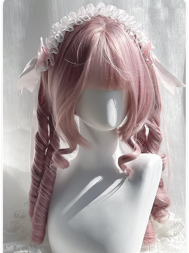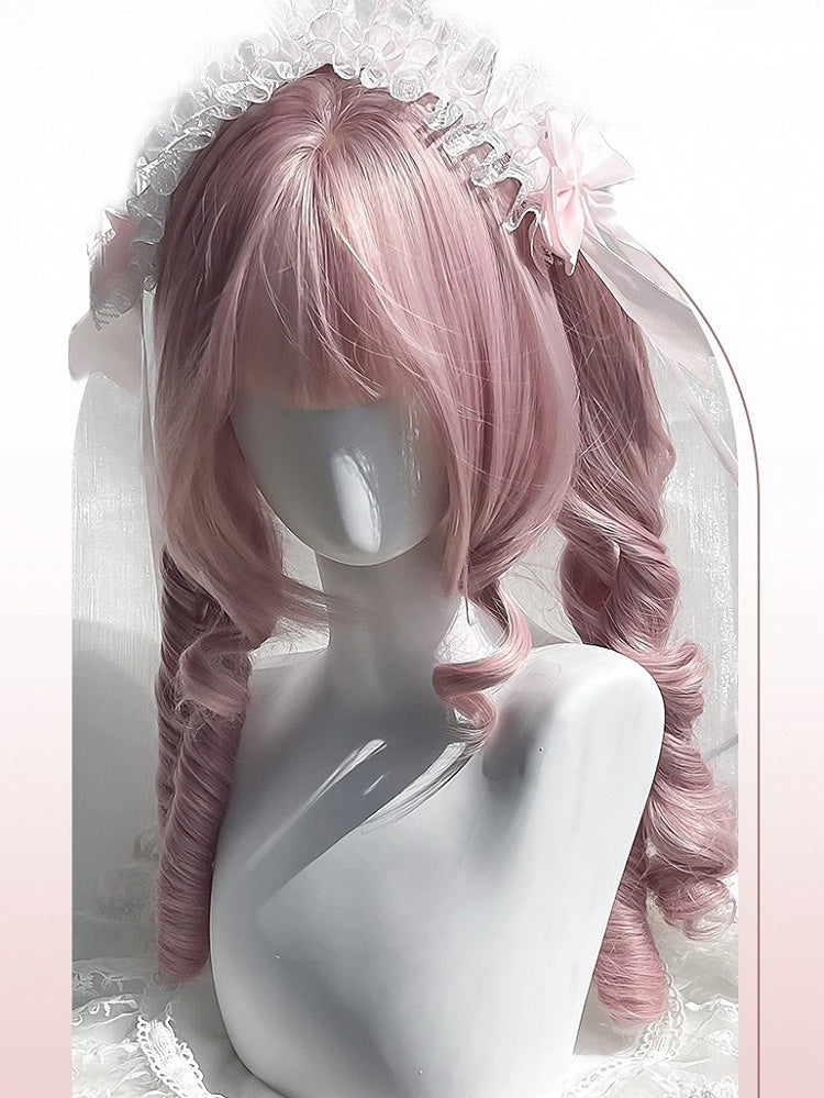 ピンク 28cm 丈 ショートウィッグ エアバングス + ダブル 32cm ローマンカーリーポニーテール クロークリップ