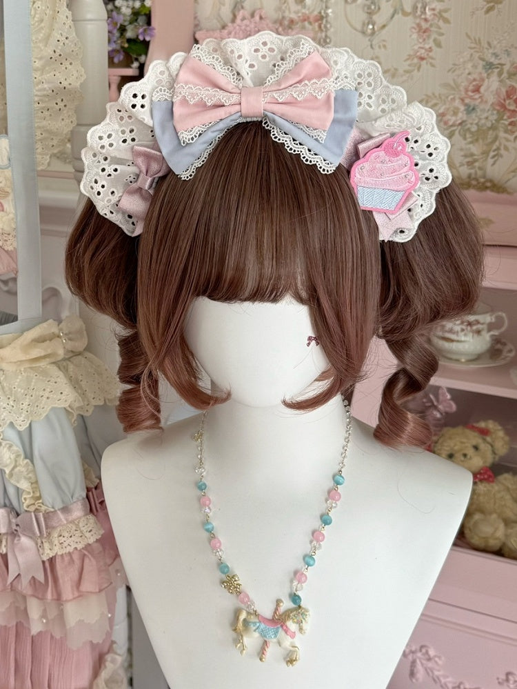 青と白のオールドスクールロリータファッションドレス 蝶結びディテール JSK セット