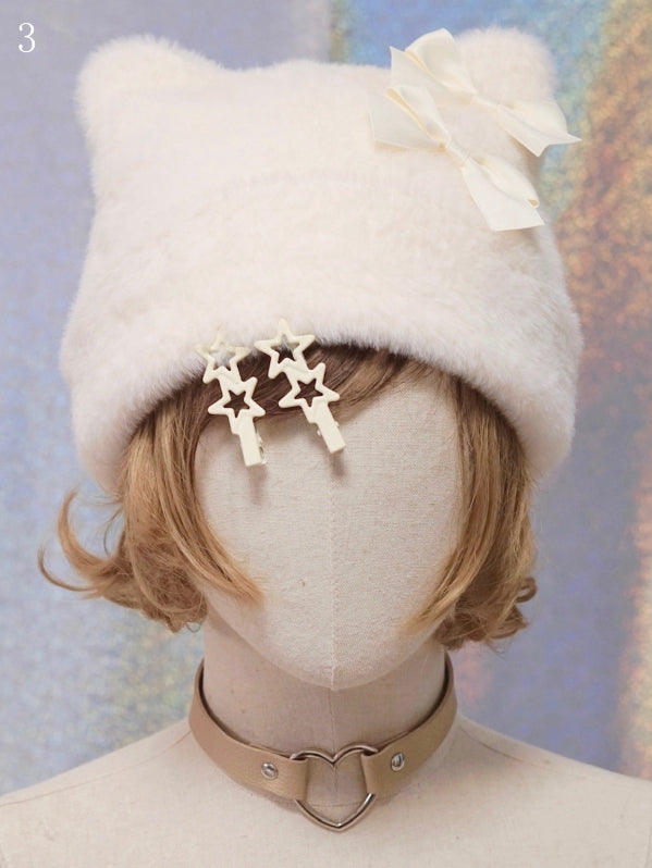 3つのオプション 星/蝶結びで飾られた猫耳帽子