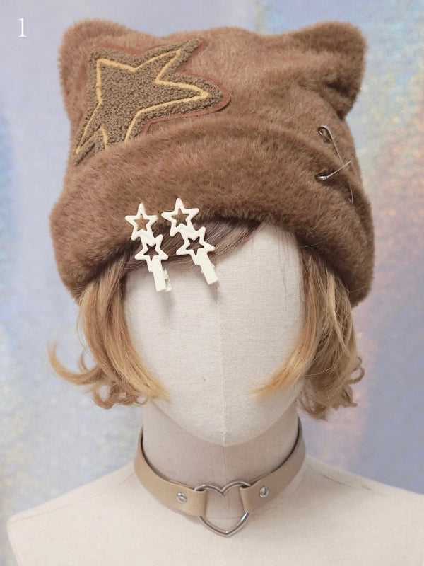 3つの帽子オプション 耳飾り 猫 星/蝶結び
