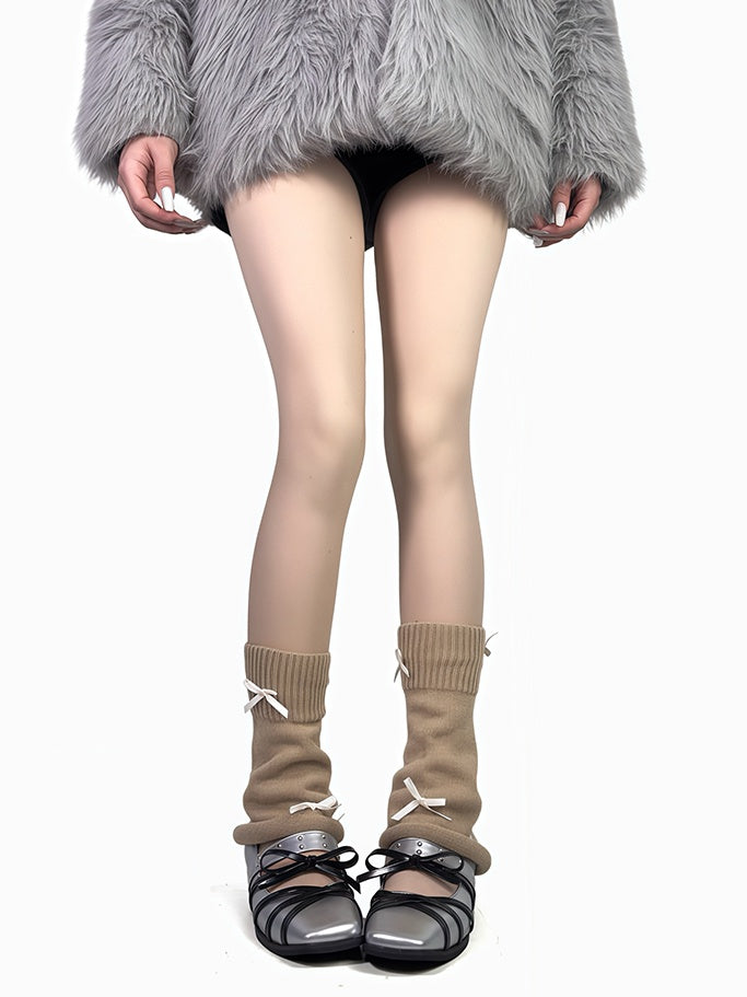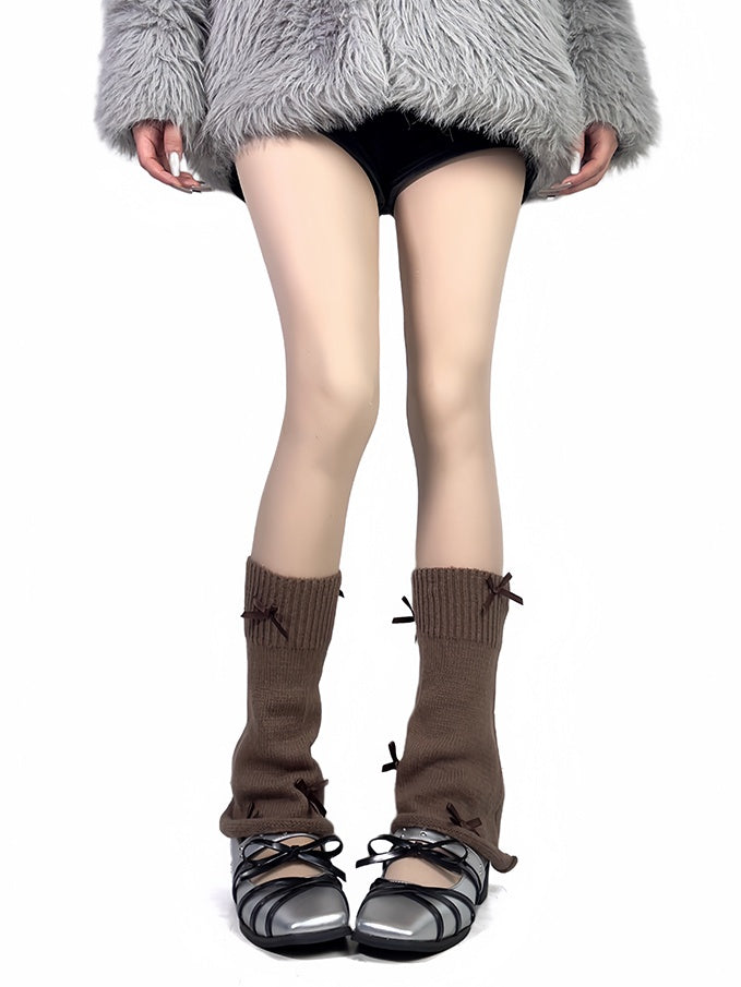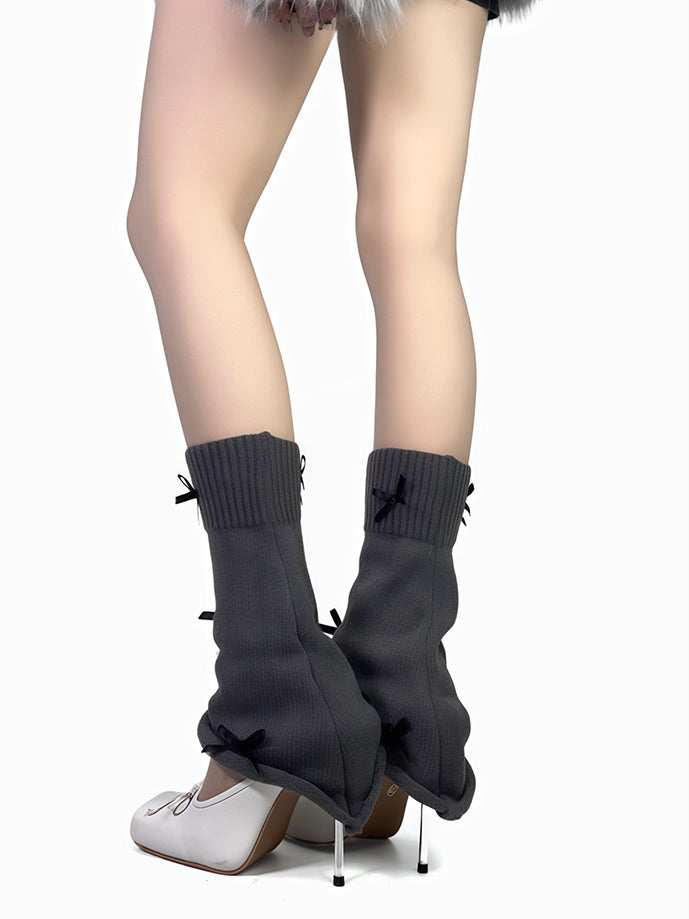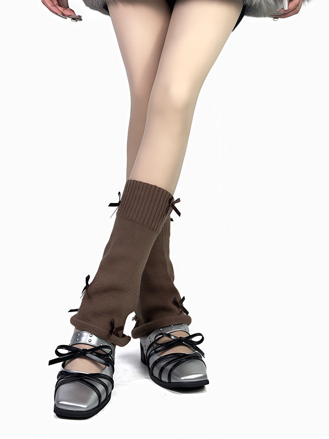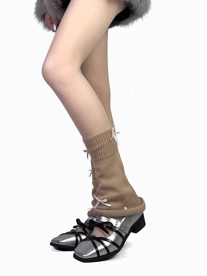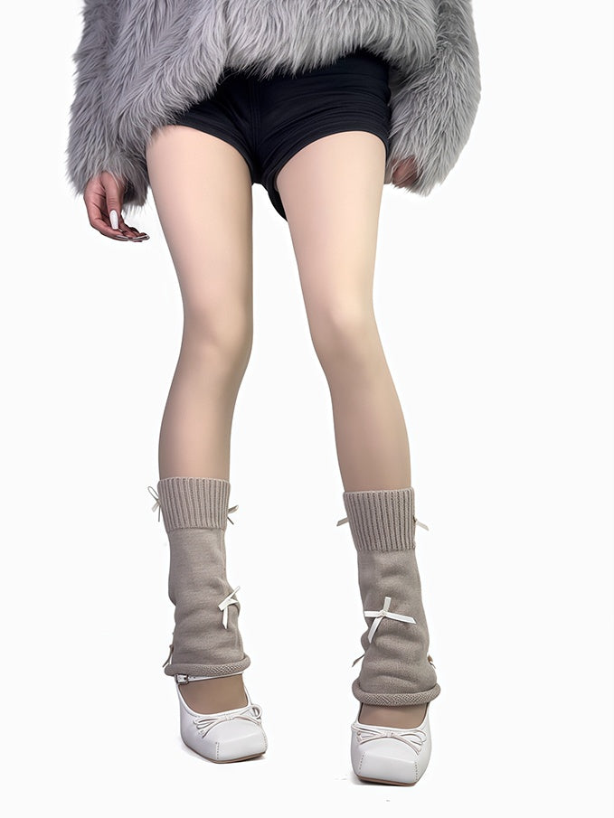 4色のリボン付きレッグウォーマー