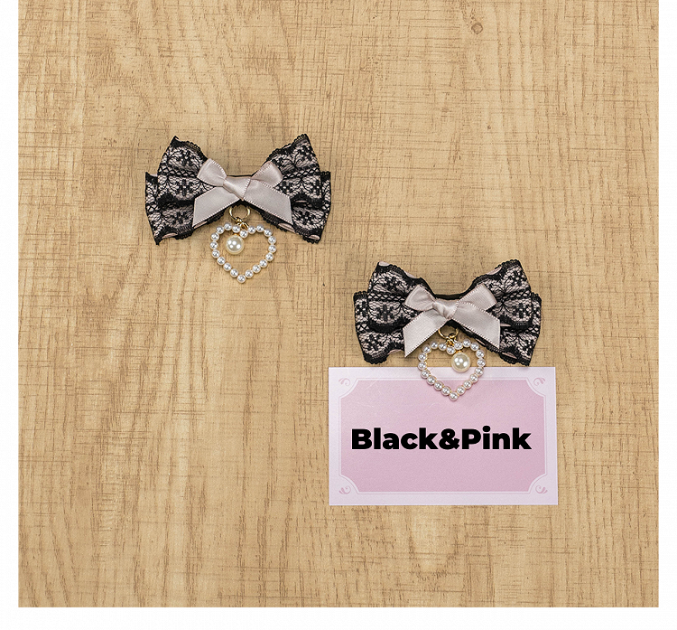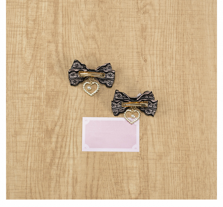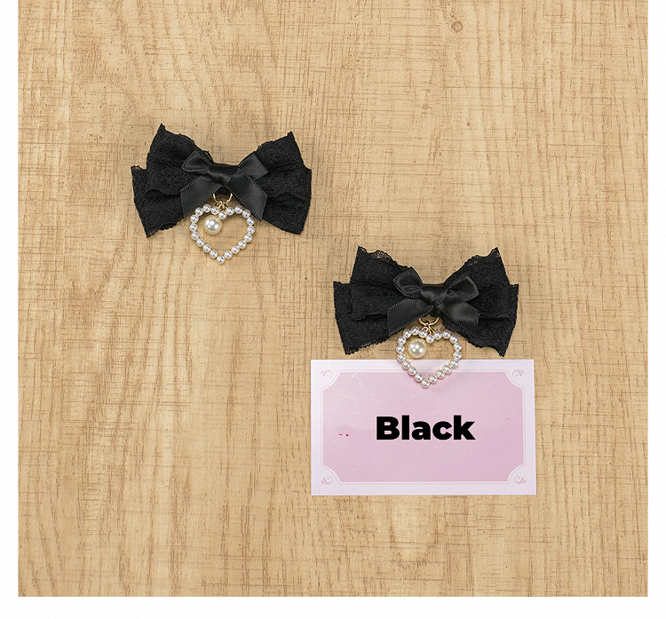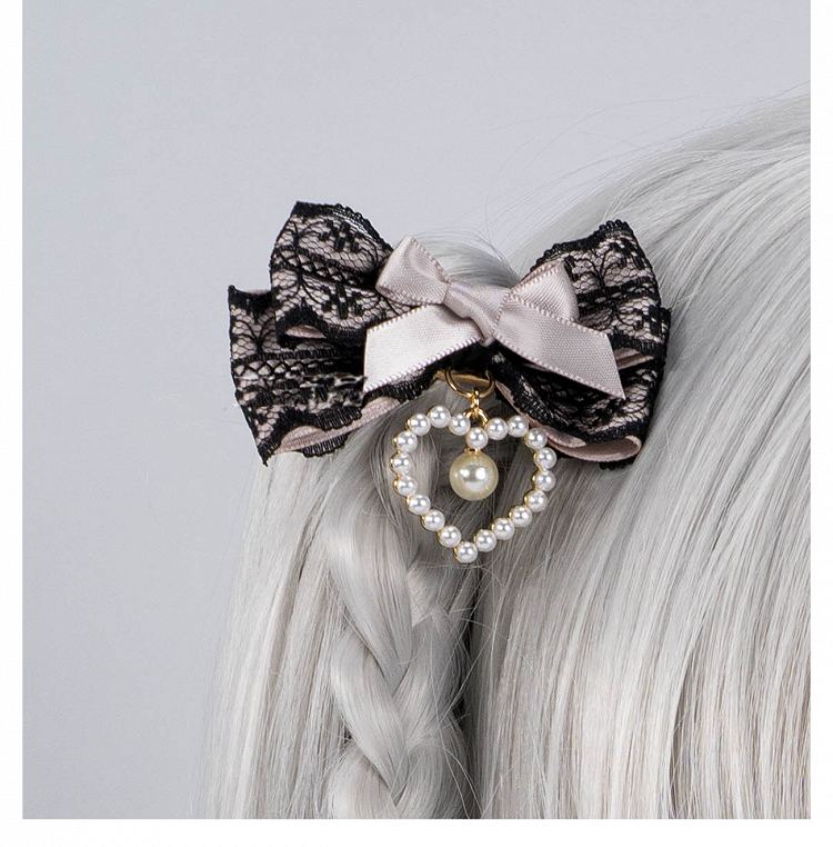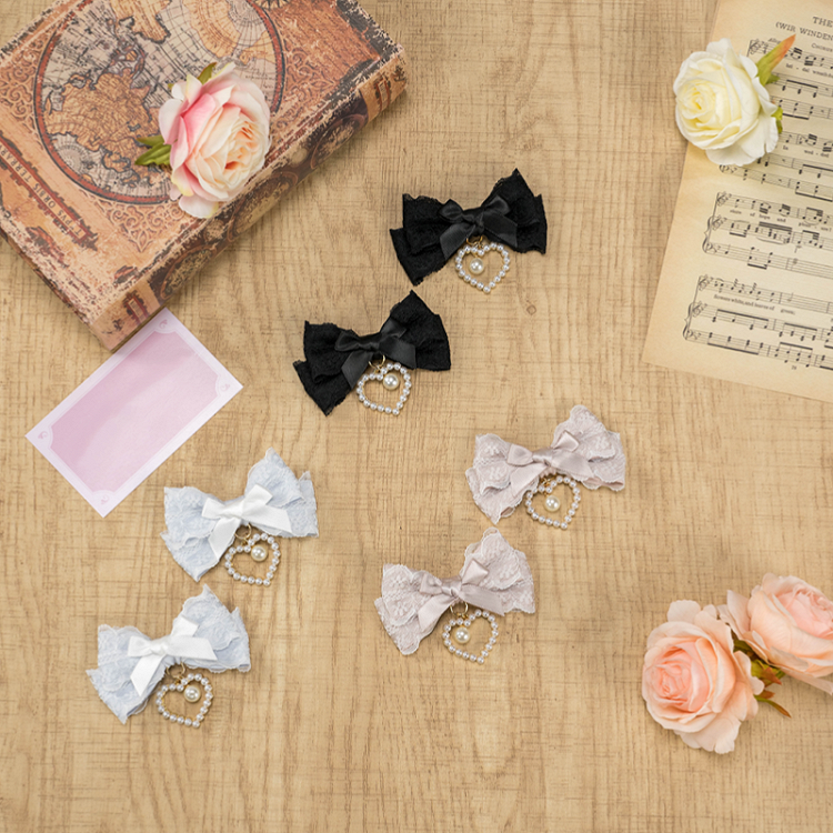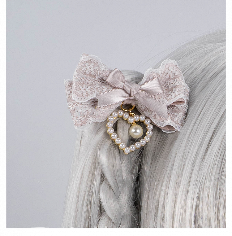 5色のビーズハートチャーム ジライケイ レースリボンヘアクリップ