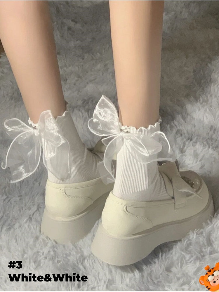 6つのオプション ビッグリボン ロリータ カーフ/アンクルソックス
